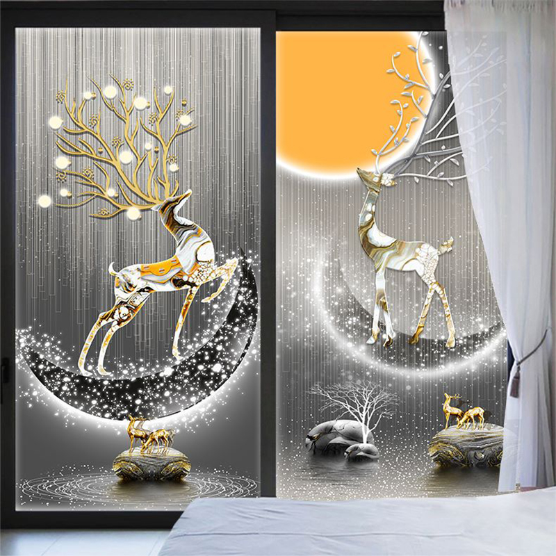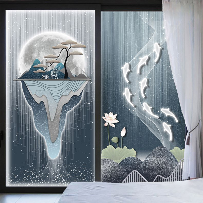 玻璃贴纸装饰画轻奢客厅移门磨砂贴膜透光不透人卫生间窗户防偷窥