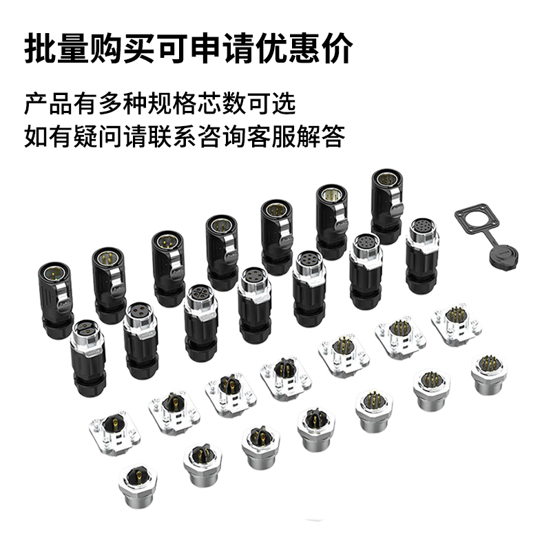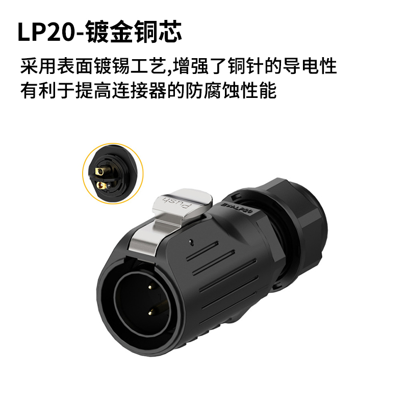 LP20 防水航空插头正装公母对插2/3/4/5/6-P免焊接工业对接连接器