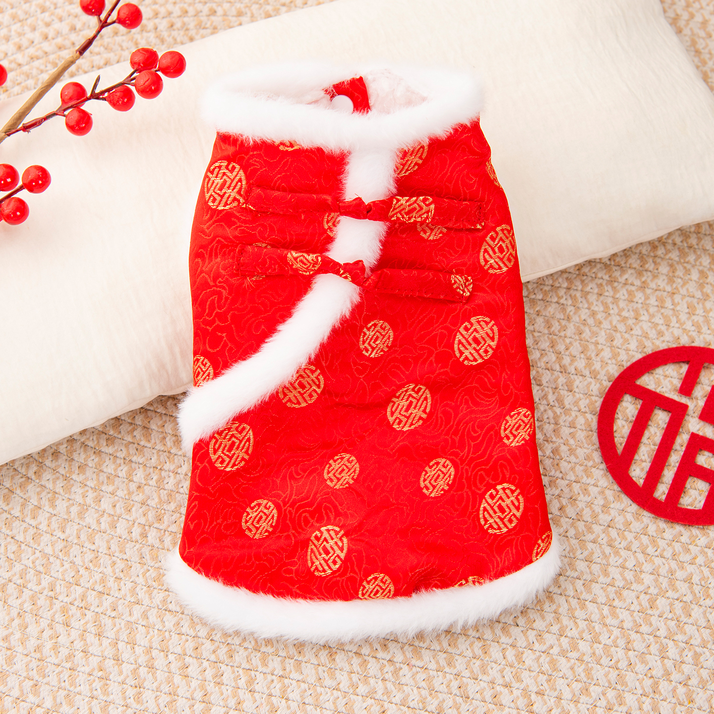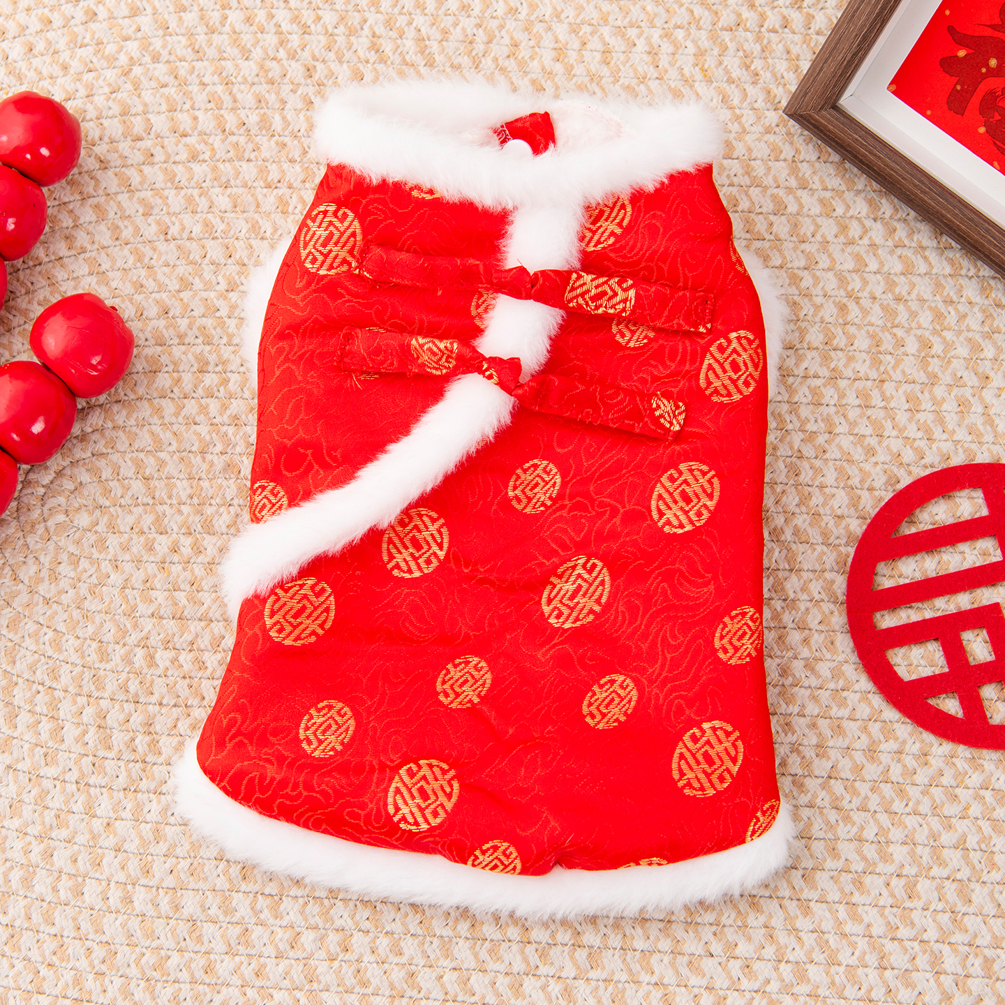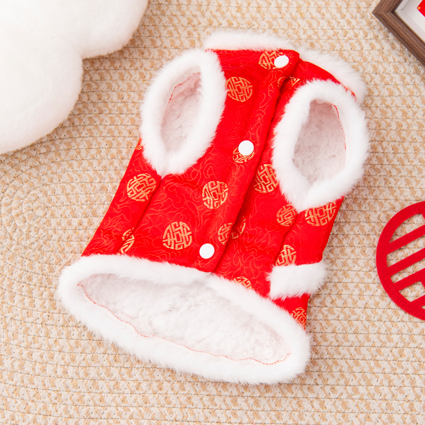 猫咪衣服秋冬款加绒保暖布偶新年喜庆唐装宠物狗狗马甲棉服拜年服
