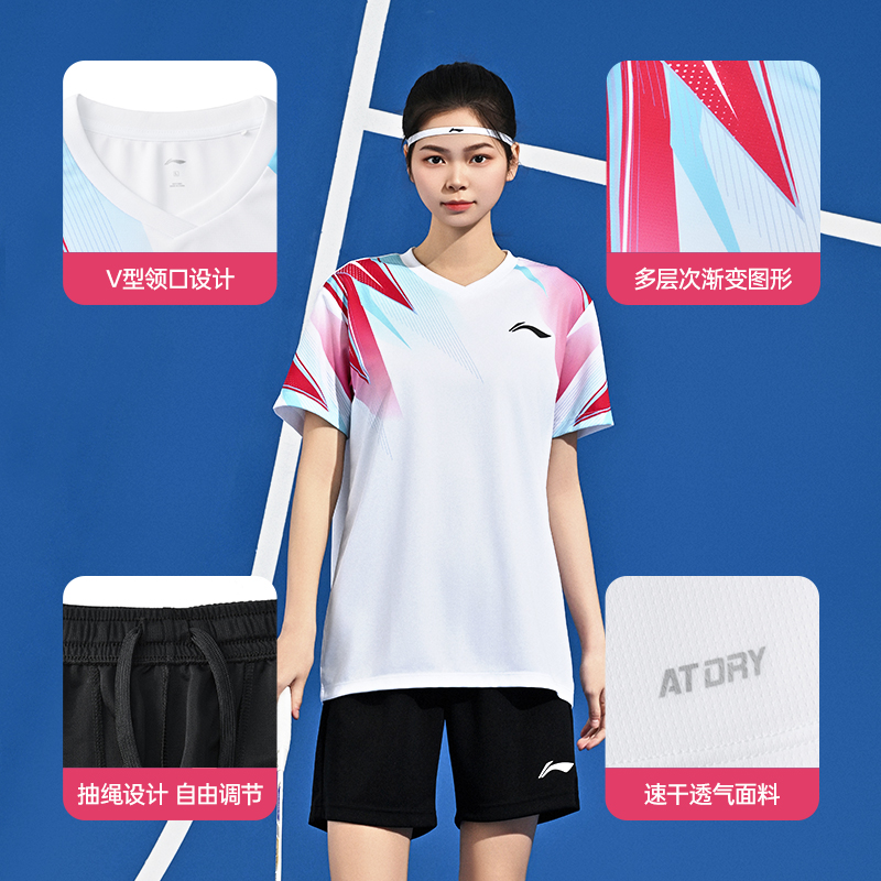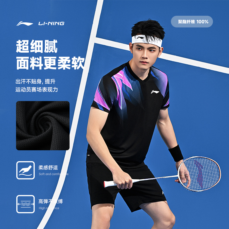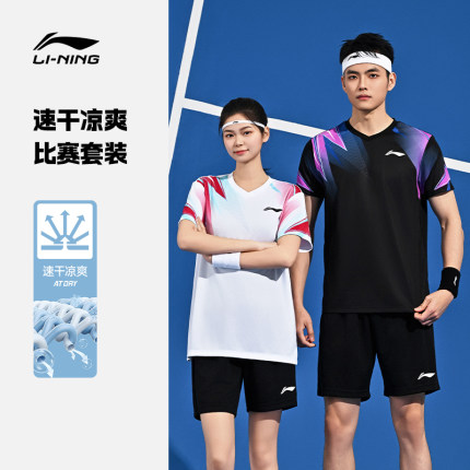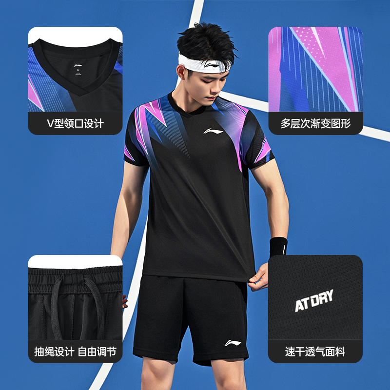 李宁羽毛球服短裤套装男款短袖训练夏季速干透气运动队服AATV011