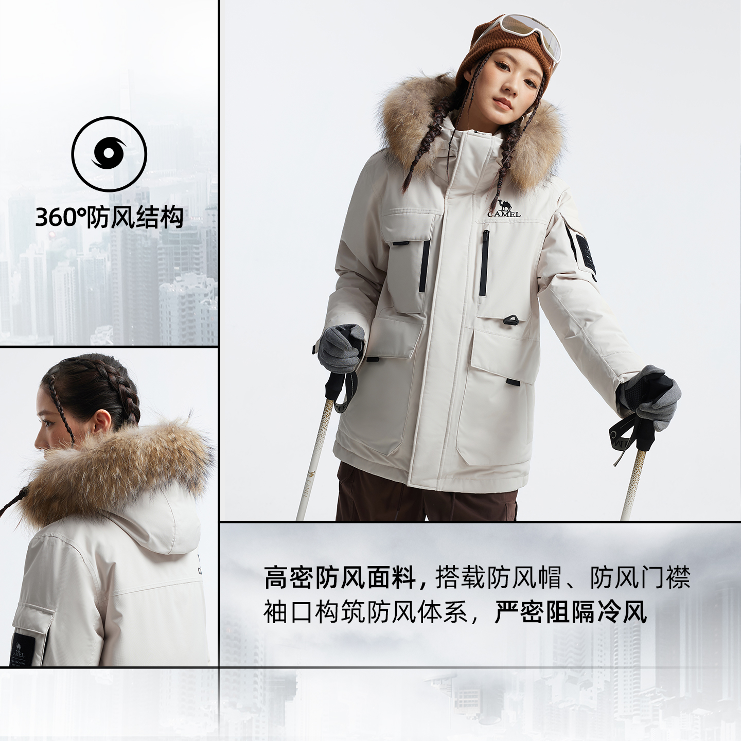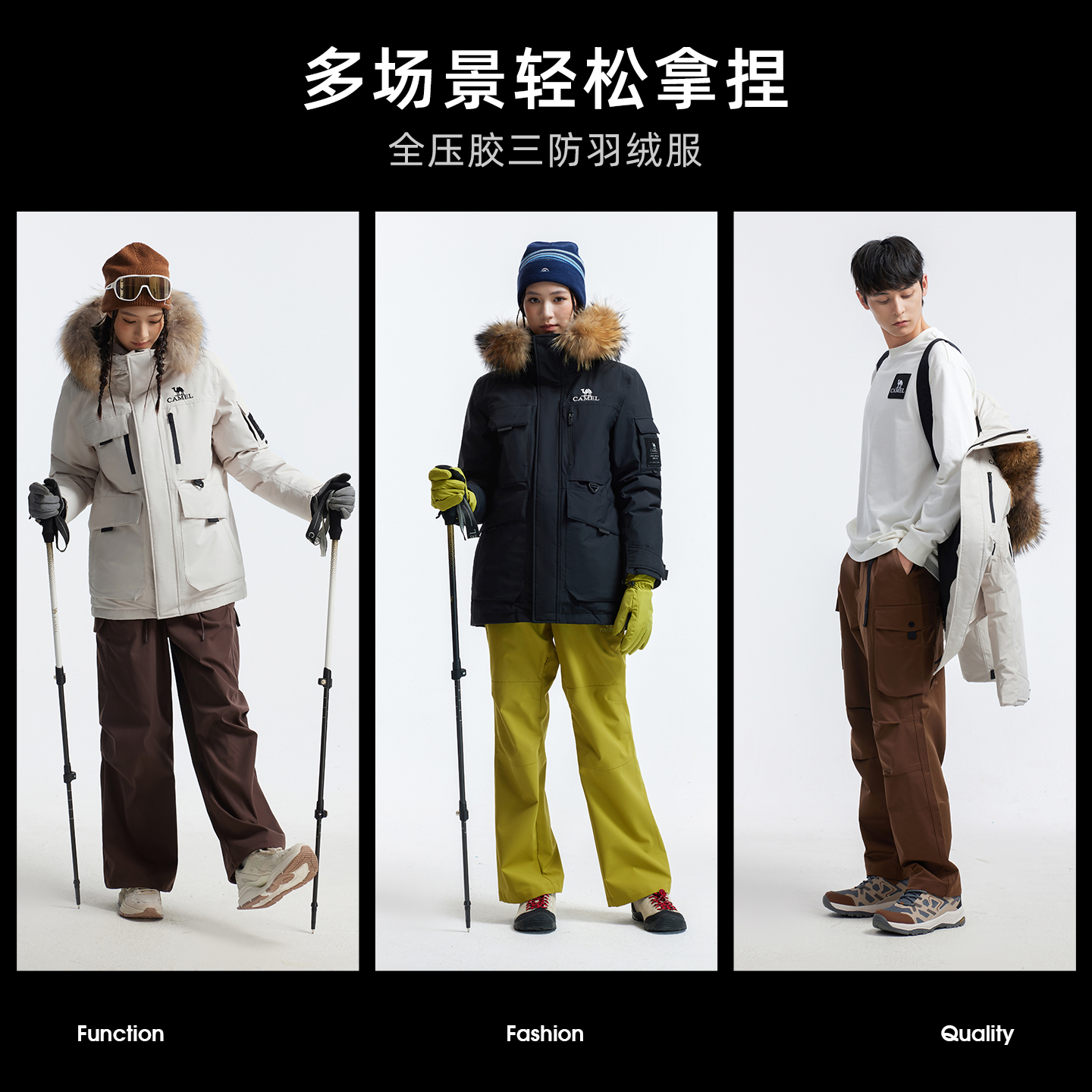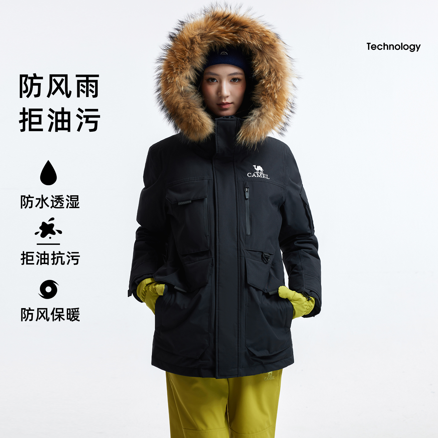 骆驼户外羽绒服冬季新款女款男款加厚保暖工装全压胶三防冲锋衣