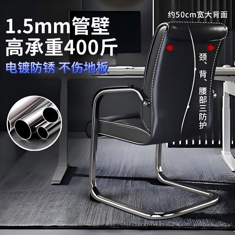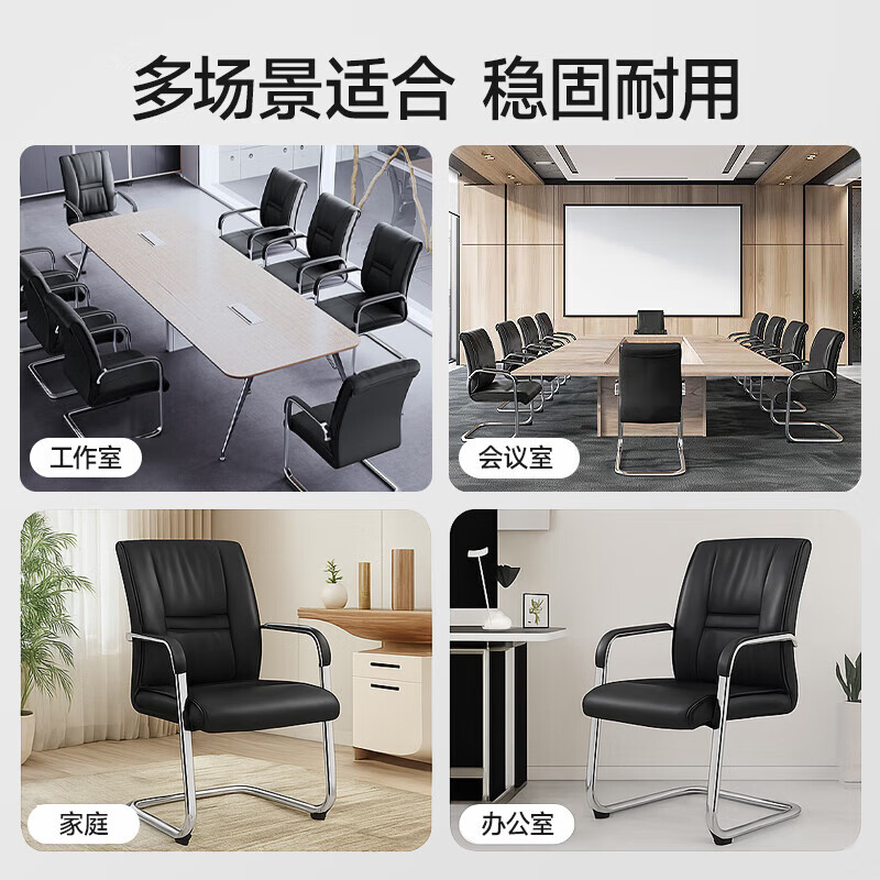 奈高办公椅电脑椅会议椅家用弓形皮质黑色椅子舒适久坐不塌老板椅