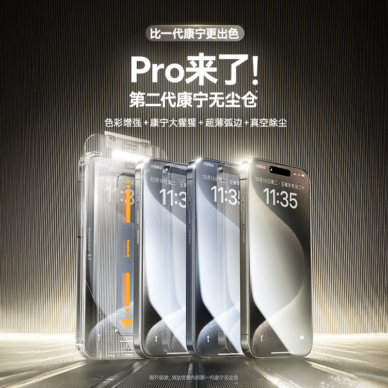 倍思适用iPhone16Pro康宁钢化膜苹果15ProMax手机无尘仓贴膜神器14新款全屏Plus高清13防摔12大猩猩玻璃pm舱p