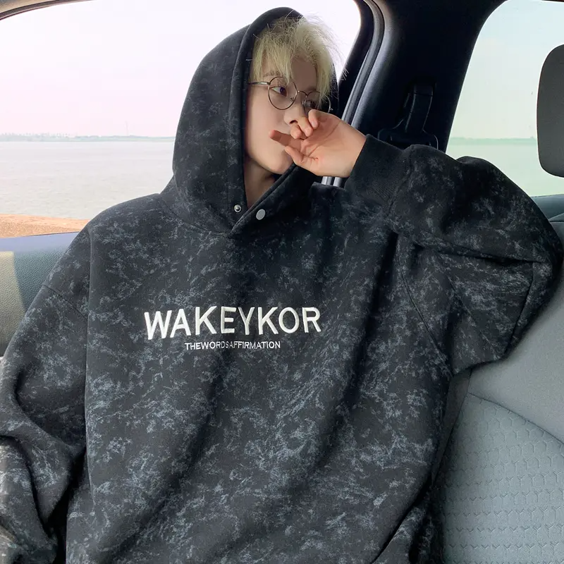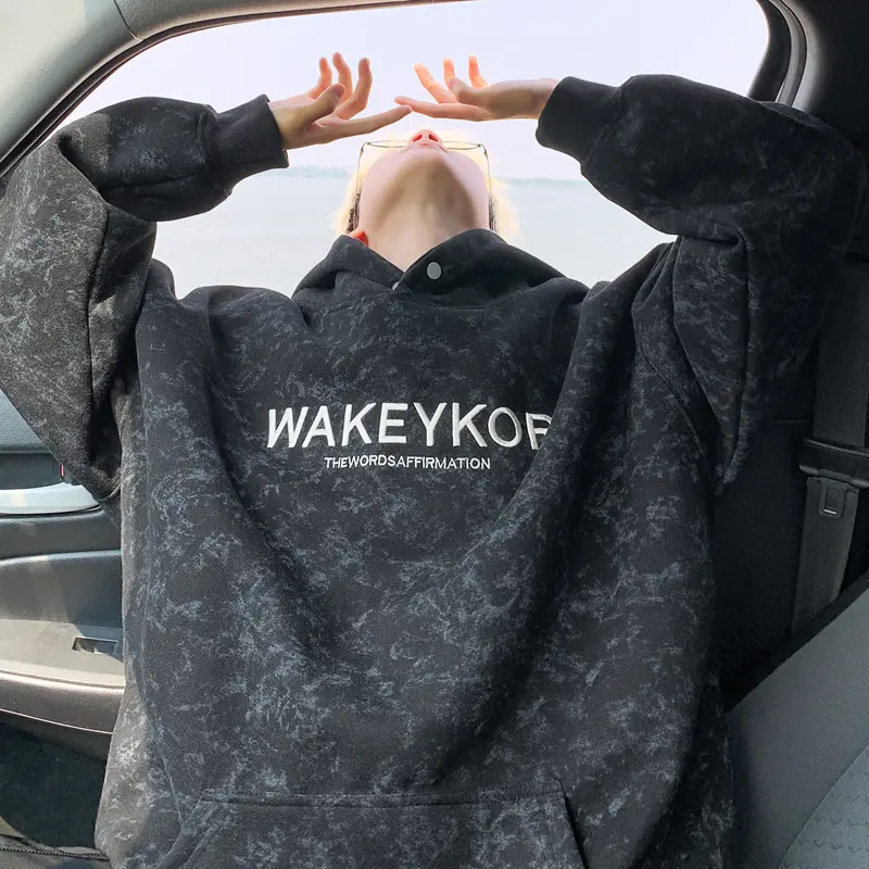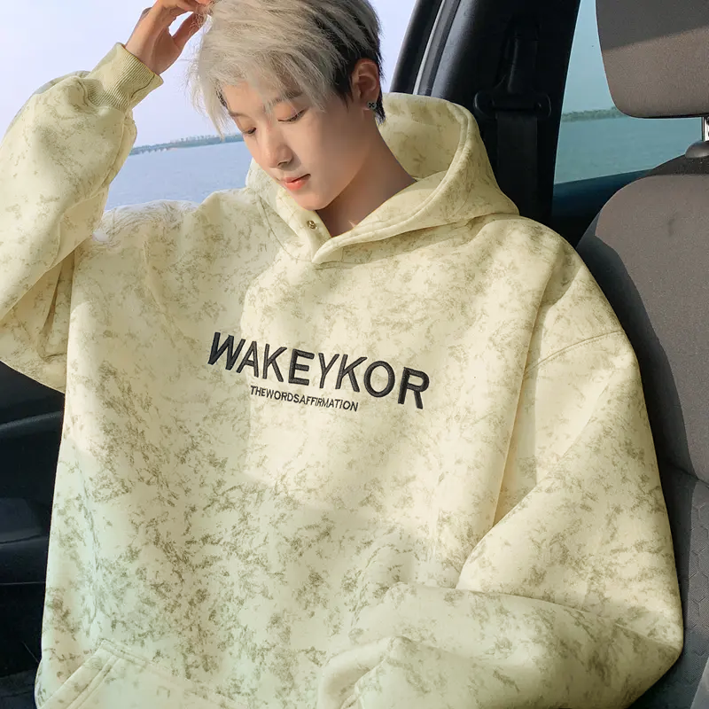 美式重磅扎染连帽卫衣男春秋休闲帽衫外套潮牌高级感慵懒套头上衣