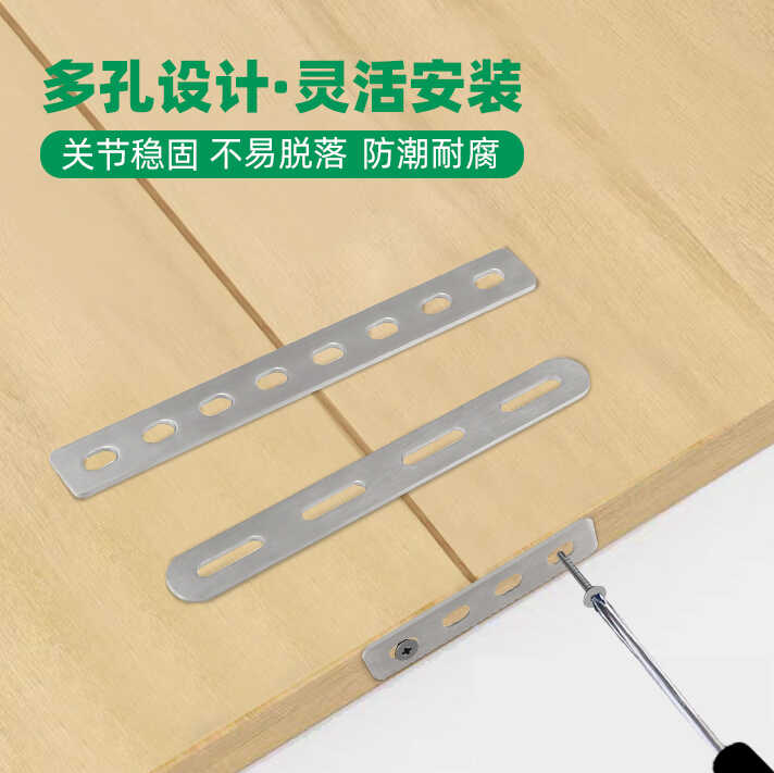 DIY可调节孔位一字长扁条连接固定不锈钢直片加厚多孔支撑架角码