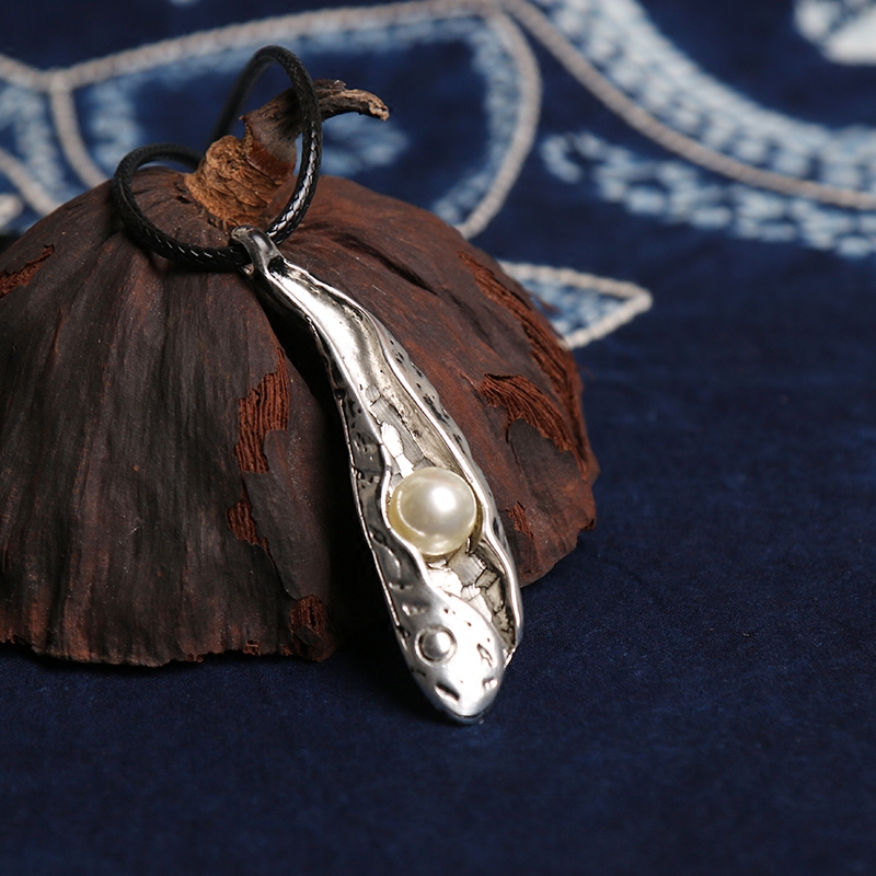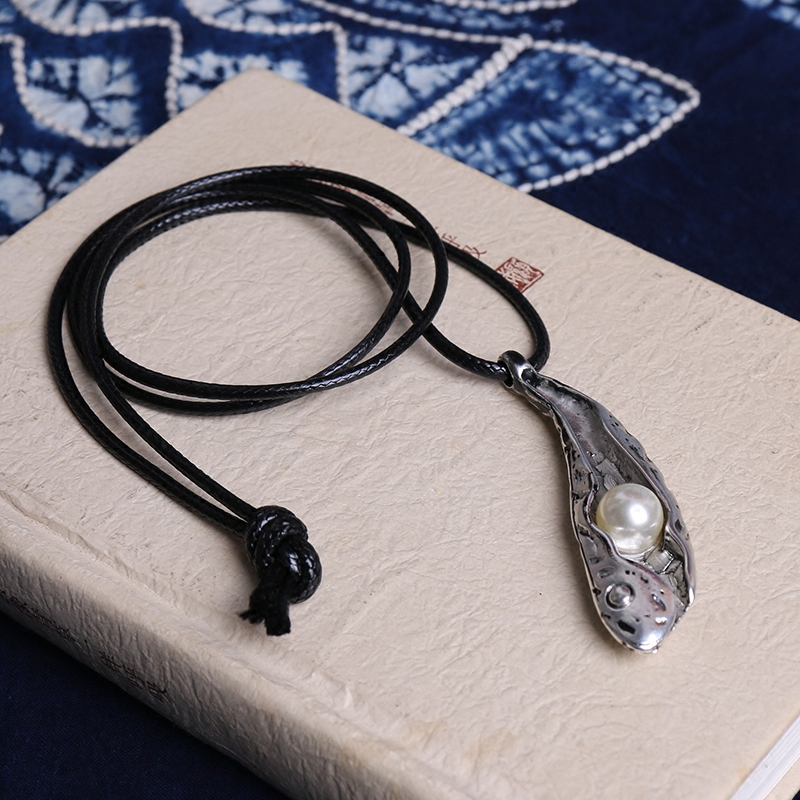 棉麻文艺鱼叶子珍珠项链韩版民族百搭长款毛衣链衣服挂件配饰礼物