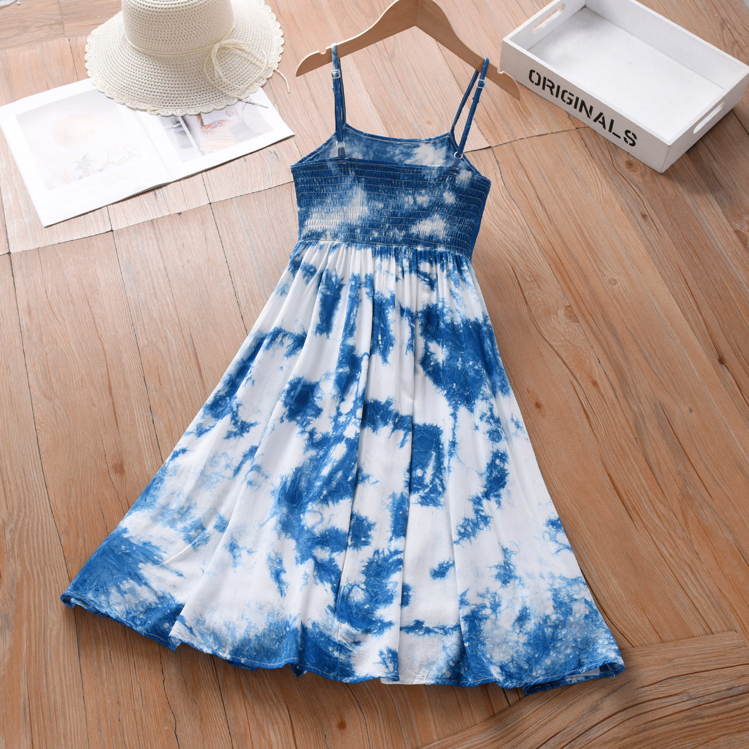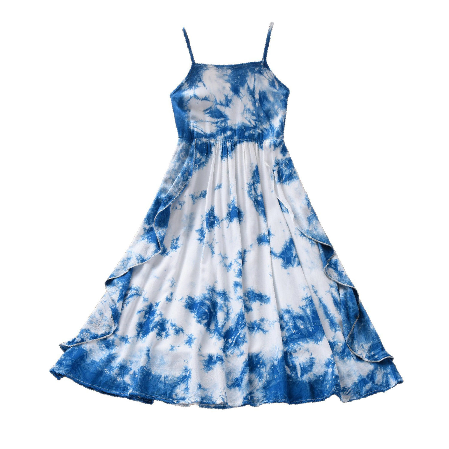云南古法扎染法式简约吊带连衣裙新款夏季显瘦百搭云染母女亲子装
