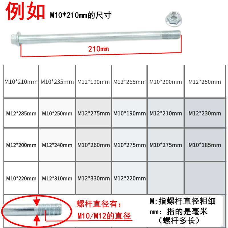 踏板机车电动车前轮轴承 轴杆 轴套M12 M10 后摇臂轴 轮毂中轴
