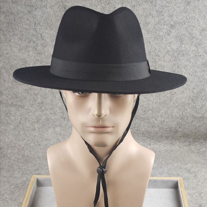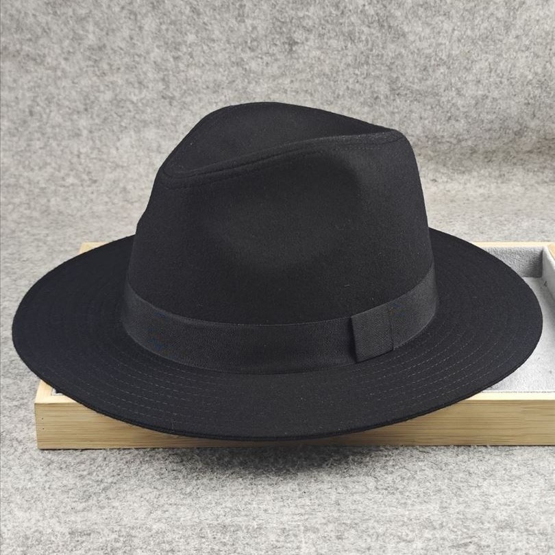 中老年男士秋冬爵士帽大头围巴拿马男帽复古上海滩黑色礼帽绅士帽