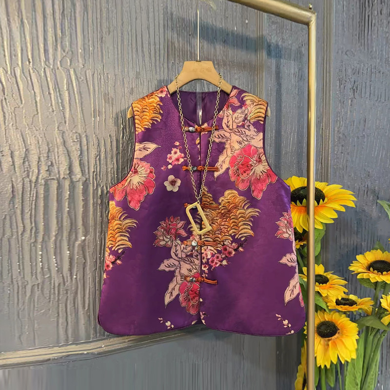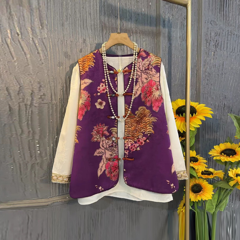 立领盘扣刺绣花朵国风马甲