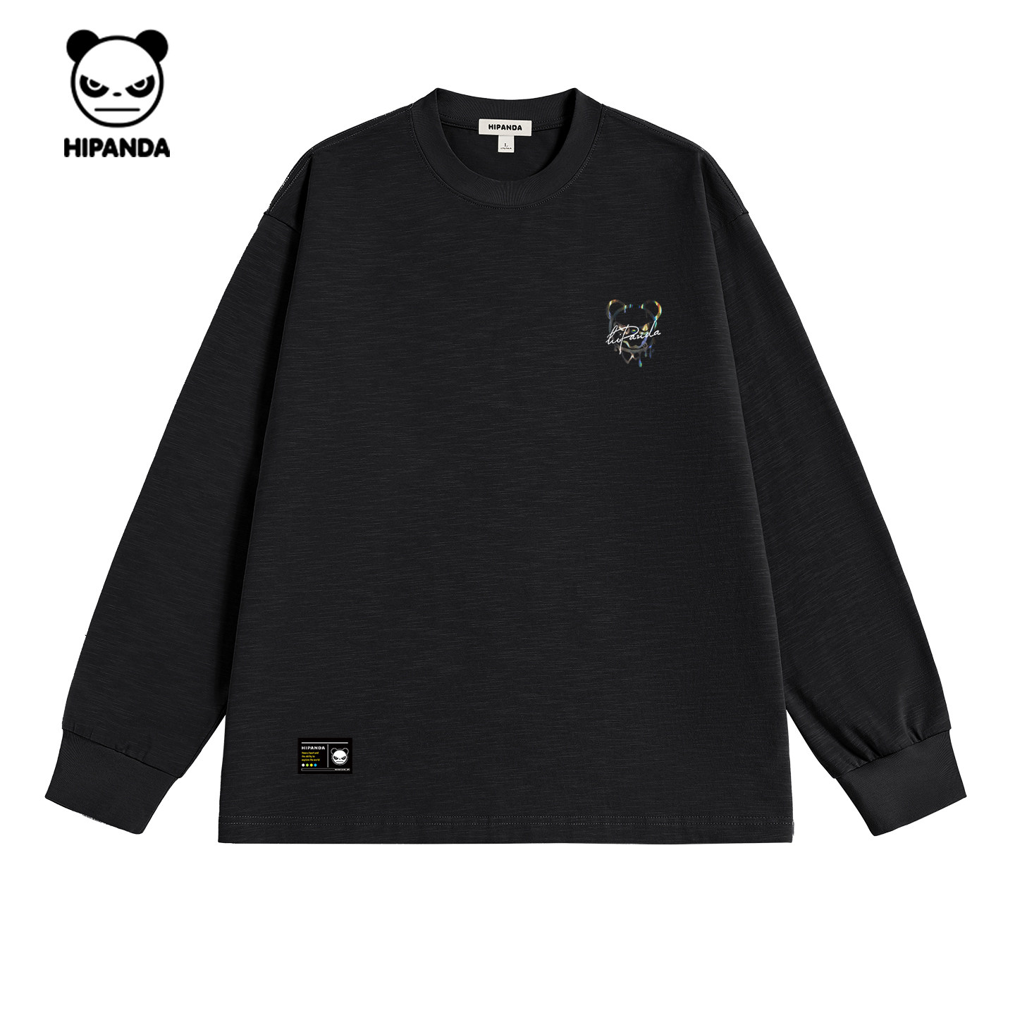 Hipanda你好熊猫纯棉竹节棉痞帅多巴胺长袖T恤2026春季新款体恤男