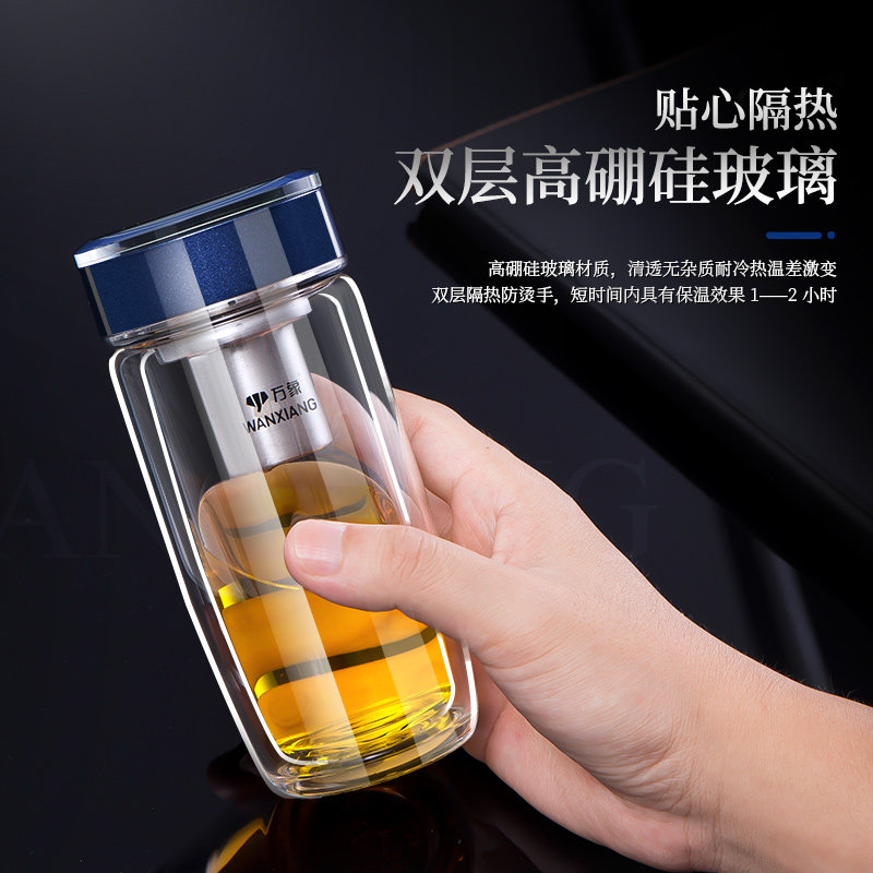 万象双层玻璃杯鹅蛋杯办公车载高档水杯隔热便携泡茶水杯杯子男