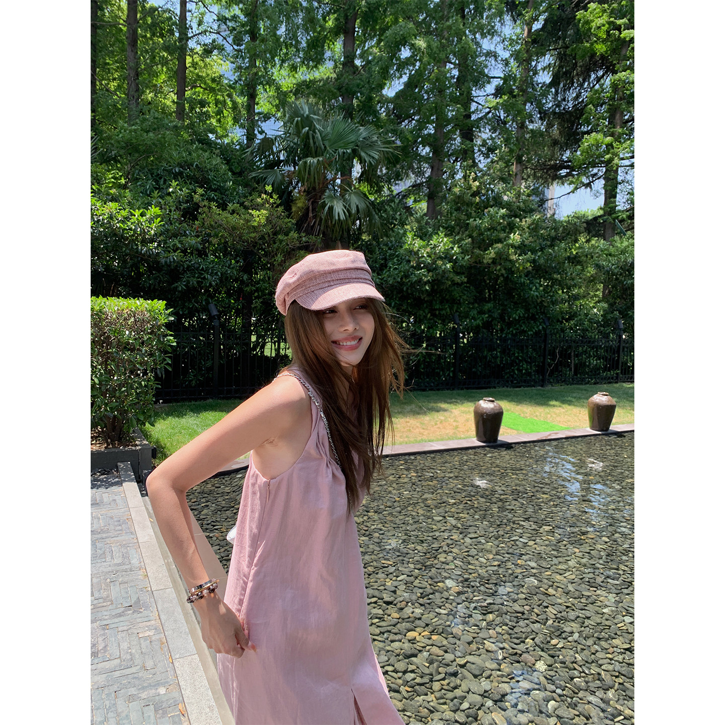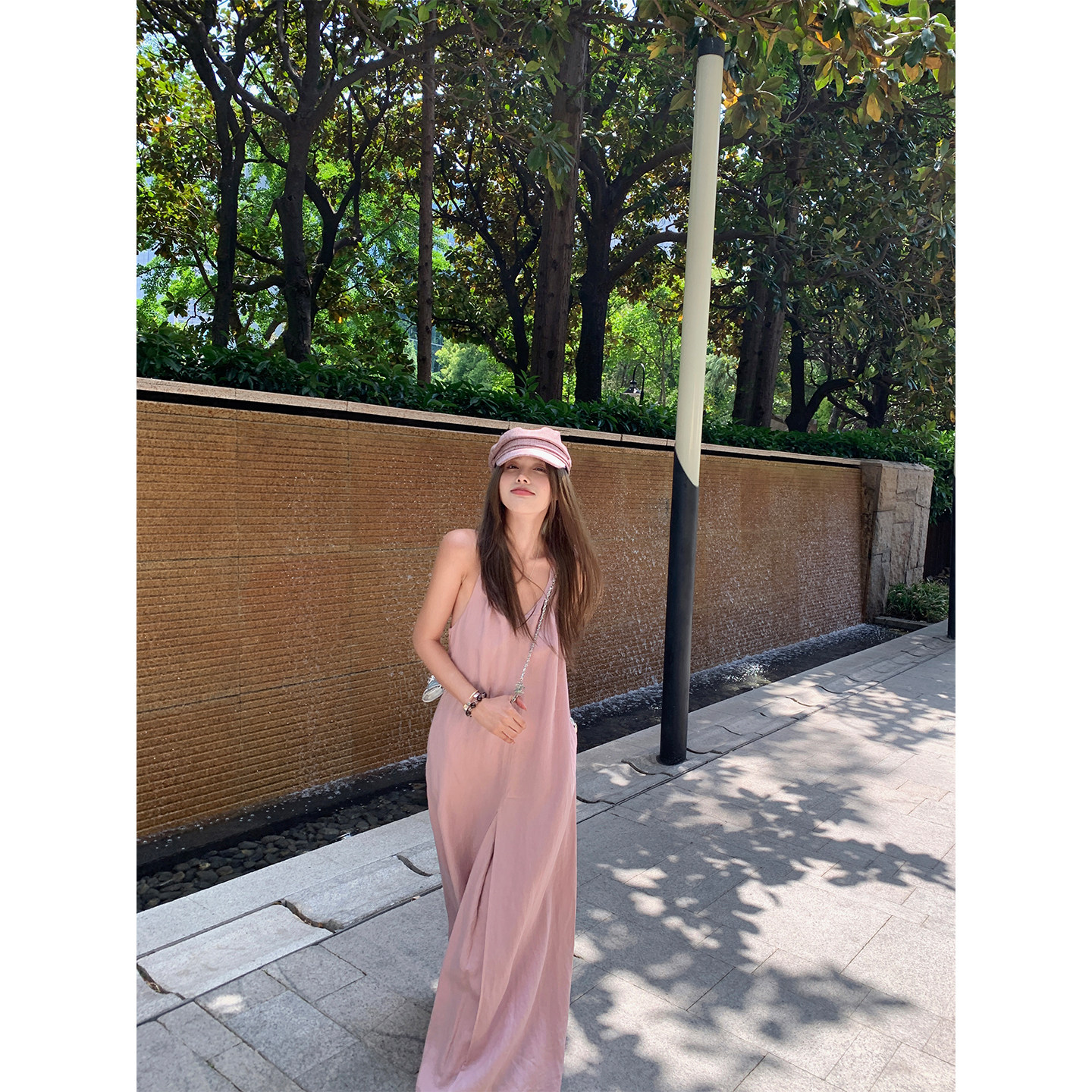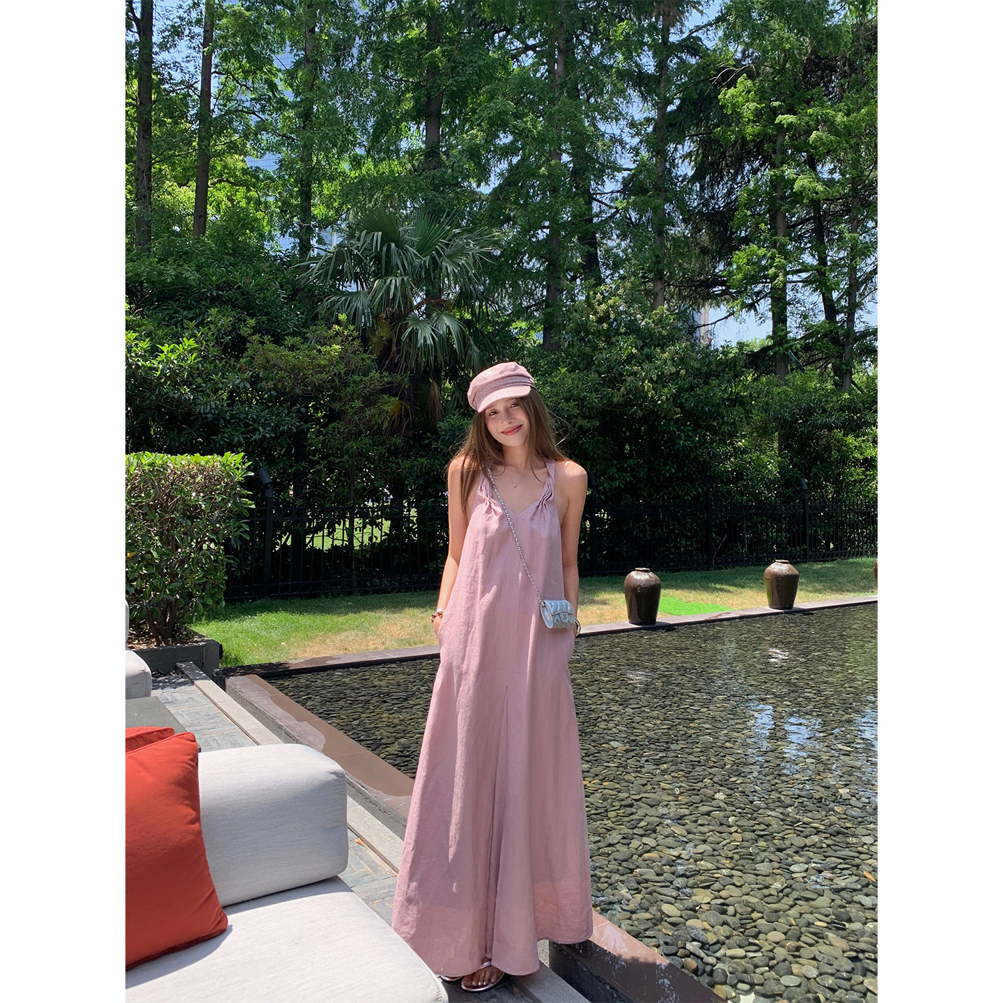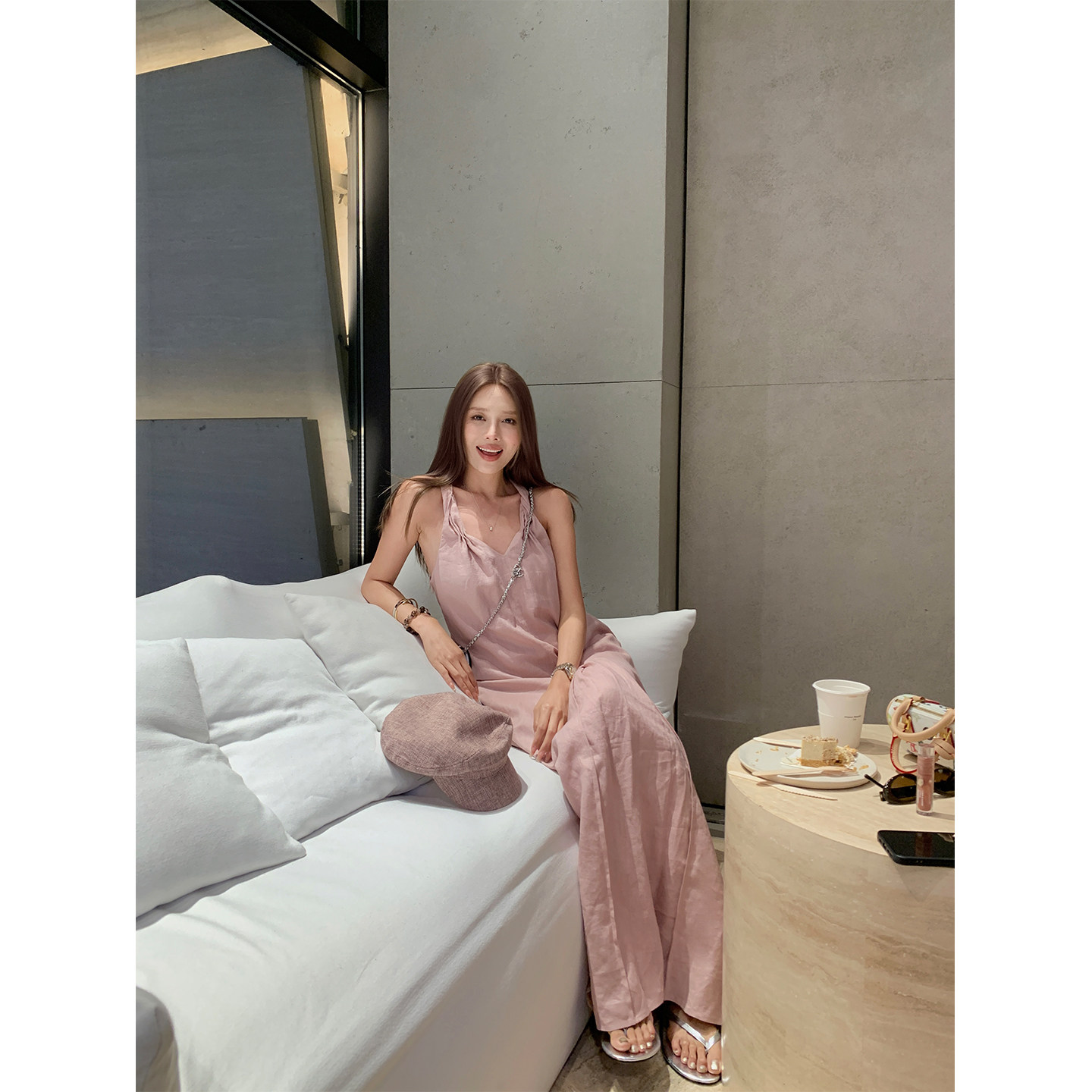 NanaByNana【coco小姐】老钱风亚麻挂脖连衣裙女夏显瘦a字长裙子