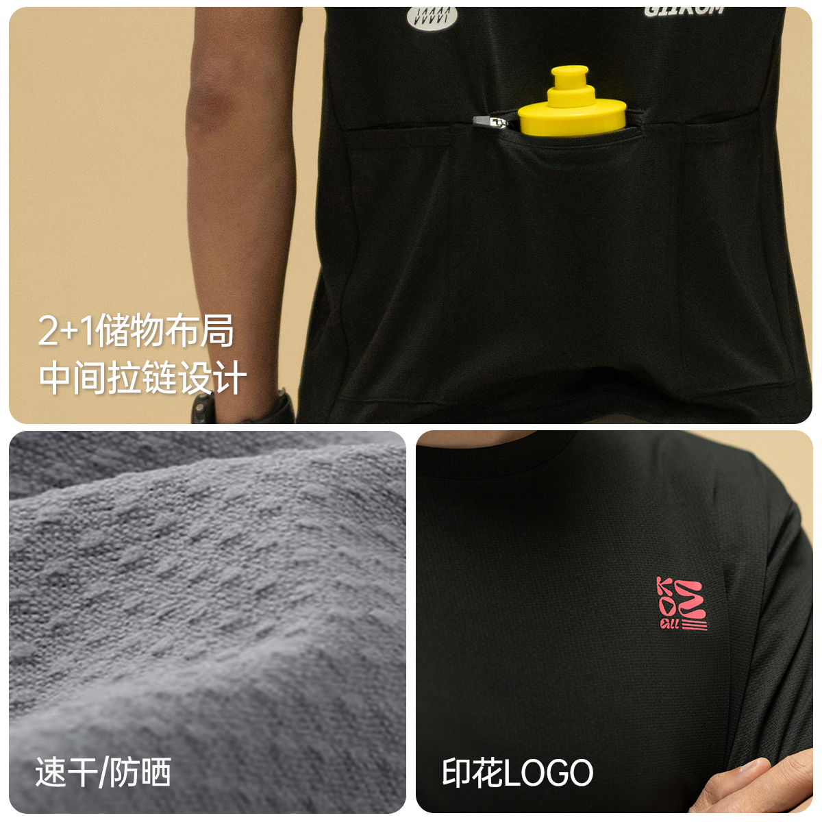 GIIKOM拉链3口袋印花骑行T恤防晒速干短袖休闲通勤骑行服男女