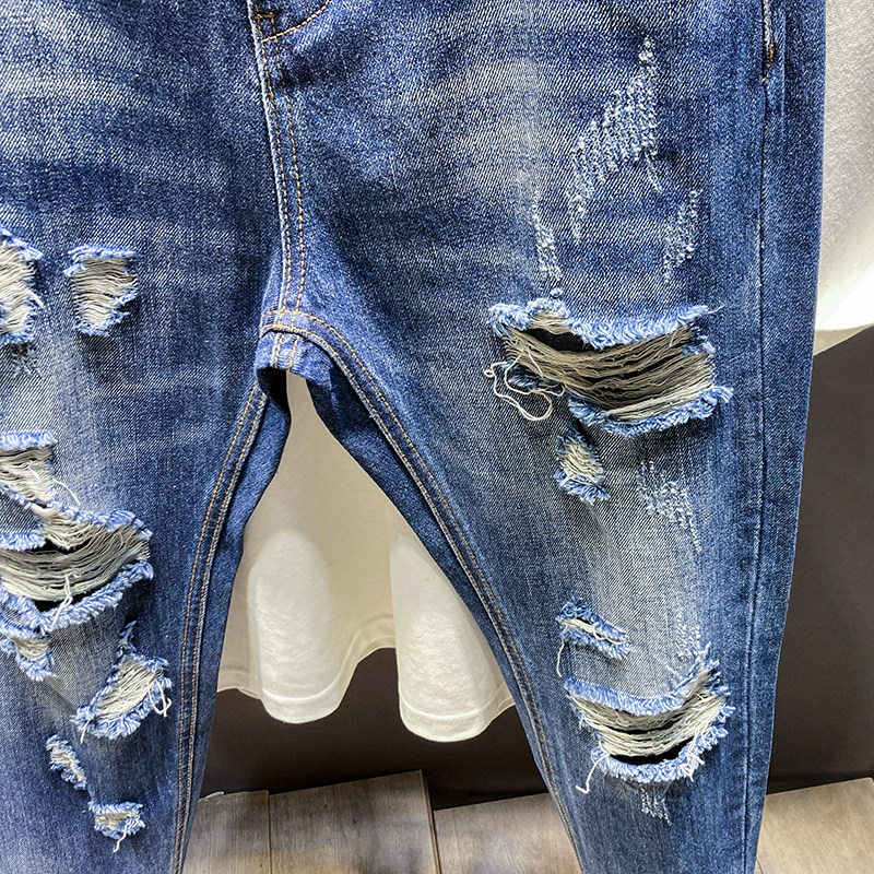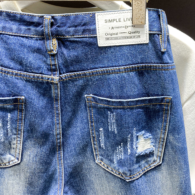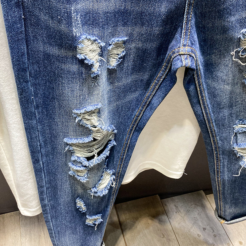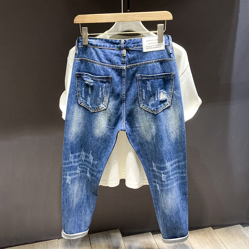 水洗复古乞丐9分裤耐磨