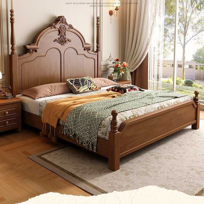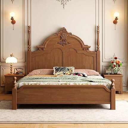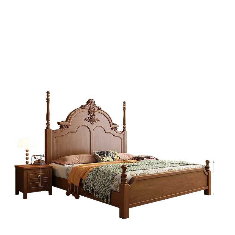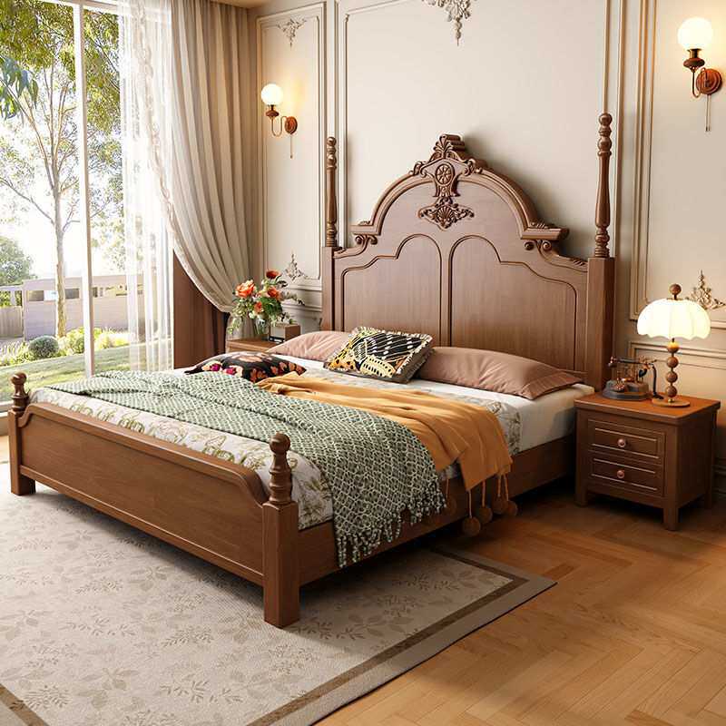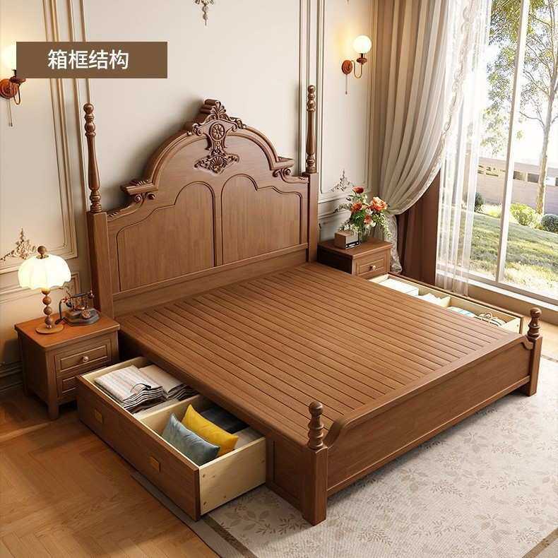 新款中古风实木双人床卧室成套家具现代简约轻奢主卧储物床床头柜