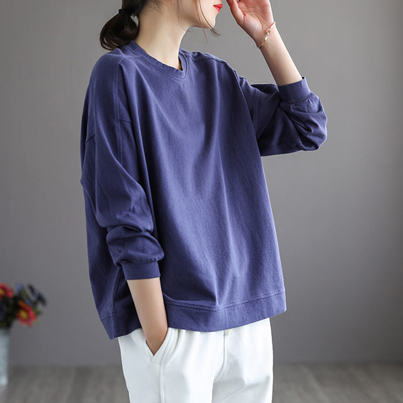 品牌专柜撤柜清仓大码女装纯棉长袖卫衣秋季文艺宽松纯色T恤上衣
