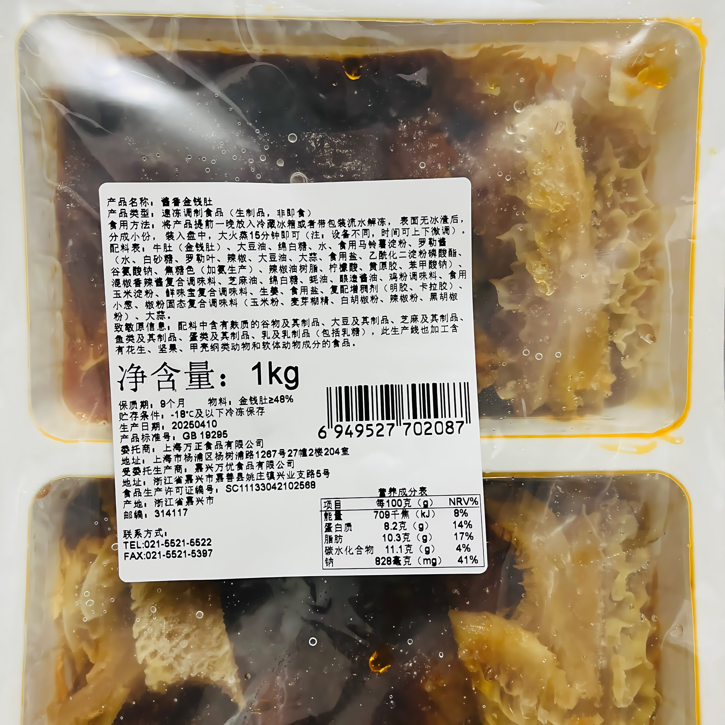万正酱香金钱肚1kg广式茶楼酒店早茶秘制调味牛肚牛杂半成品商用
