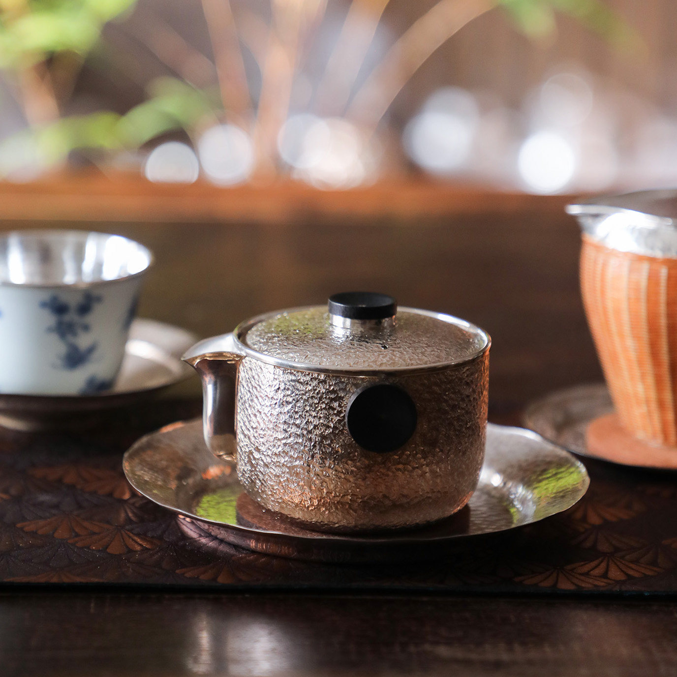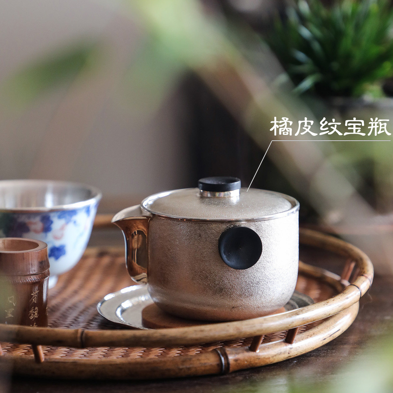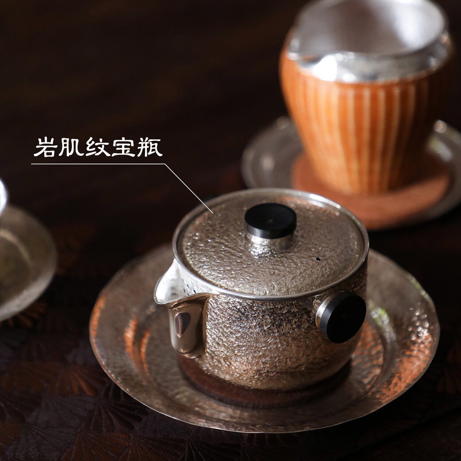 纯银时代 宝瓶手抓壶足银999手工锤纹盖碗便携银泡茶壶190ml