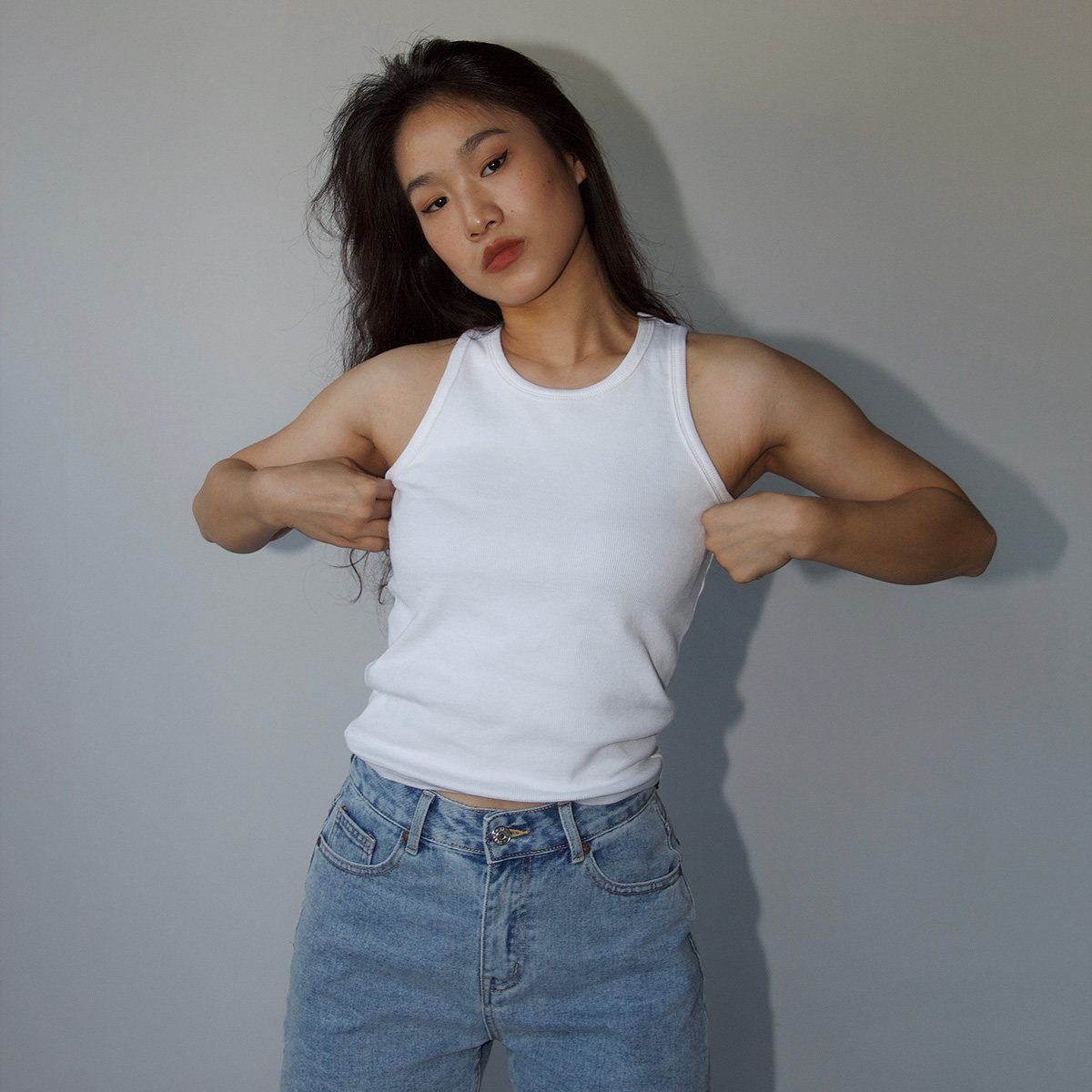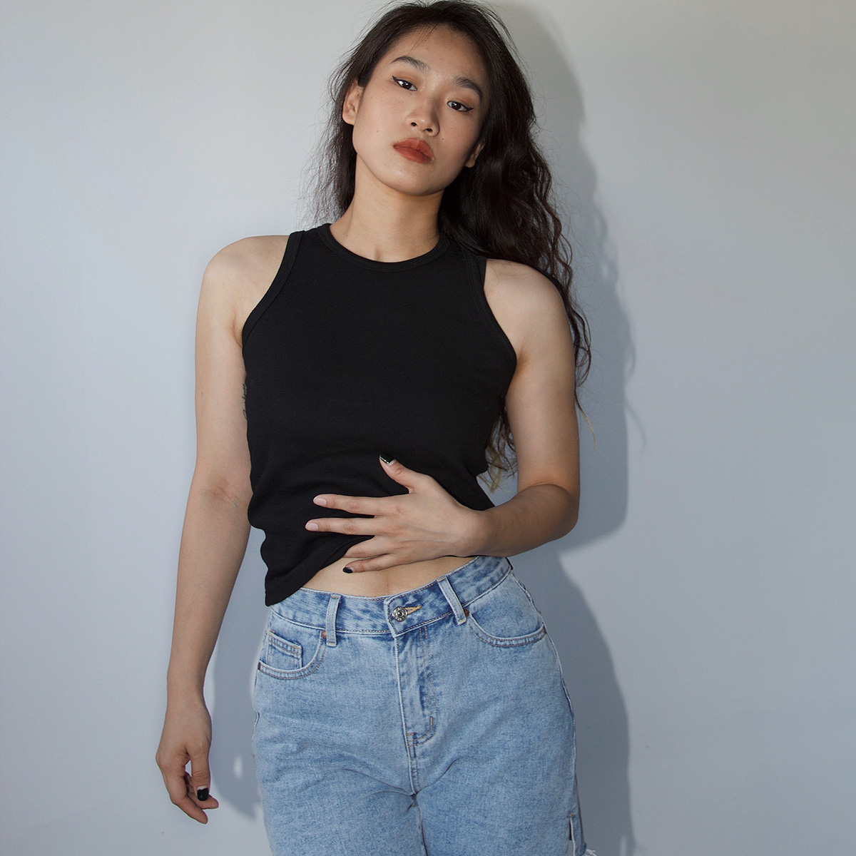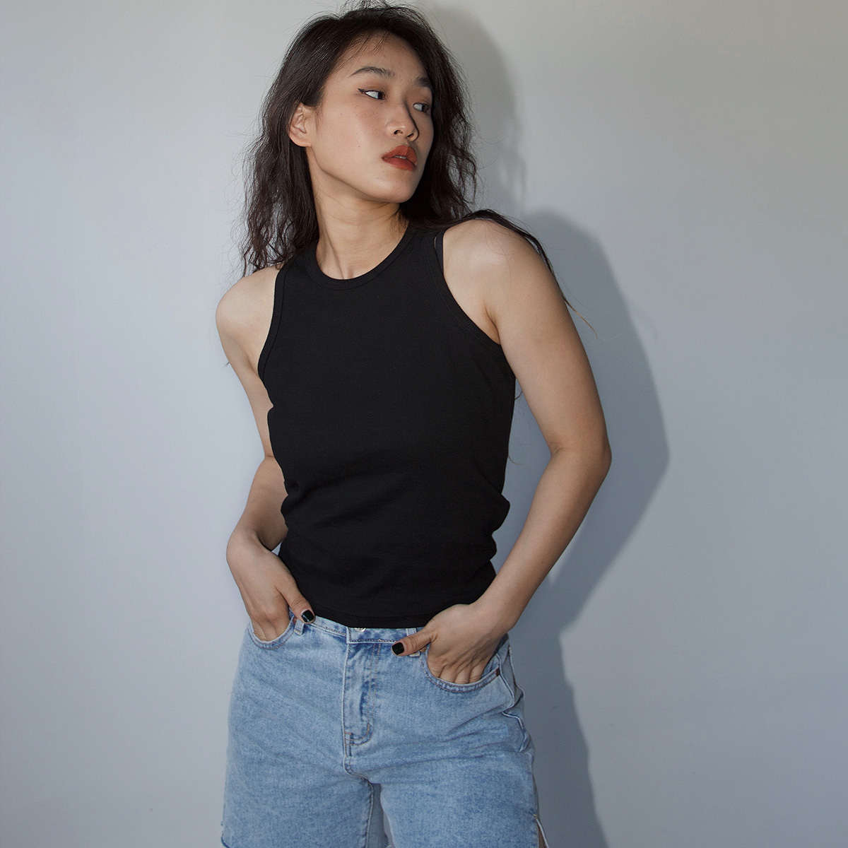 Ravehouse欧美简约经典肯豆超模坦克螺纹背心吊带上衣女夏季