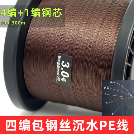 巨物防咬钢芯沉水300米PE线钓甲鱼防缠绕主子线秒切包芯线不褪色