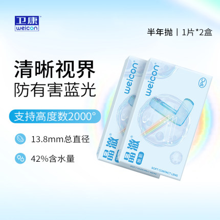 卫康晶澈防蓝光高度数运动隐形眼镜半年抛2片透明水凝胶防uv近视