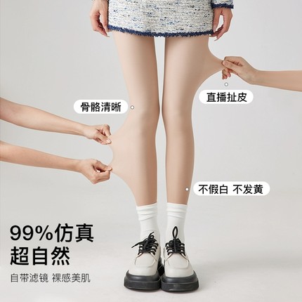 连裤袜打底裤丝袜光腿神器女秋冬季加绒加厚春秋薄款肉色薄绒白色