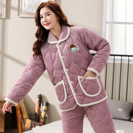 冬季三层夹棉家居服加厚保暖套装