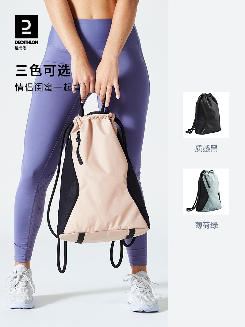 迪卡侬束口袋抽绳双肩包轻便束绳布袋男女旅行包迷你小背包WSLA
