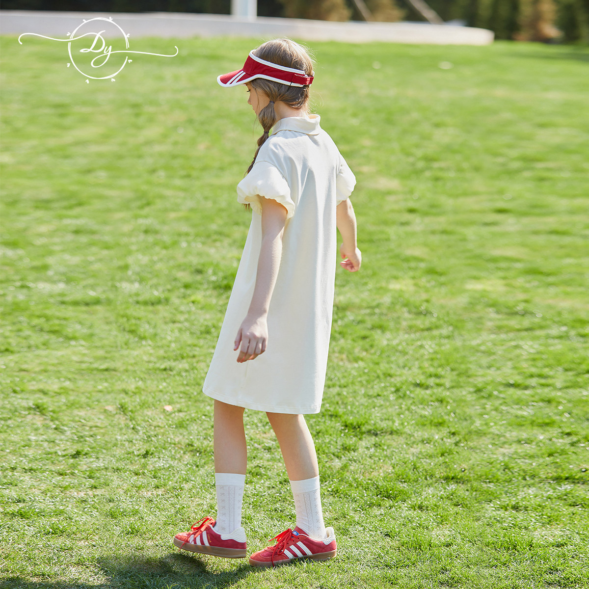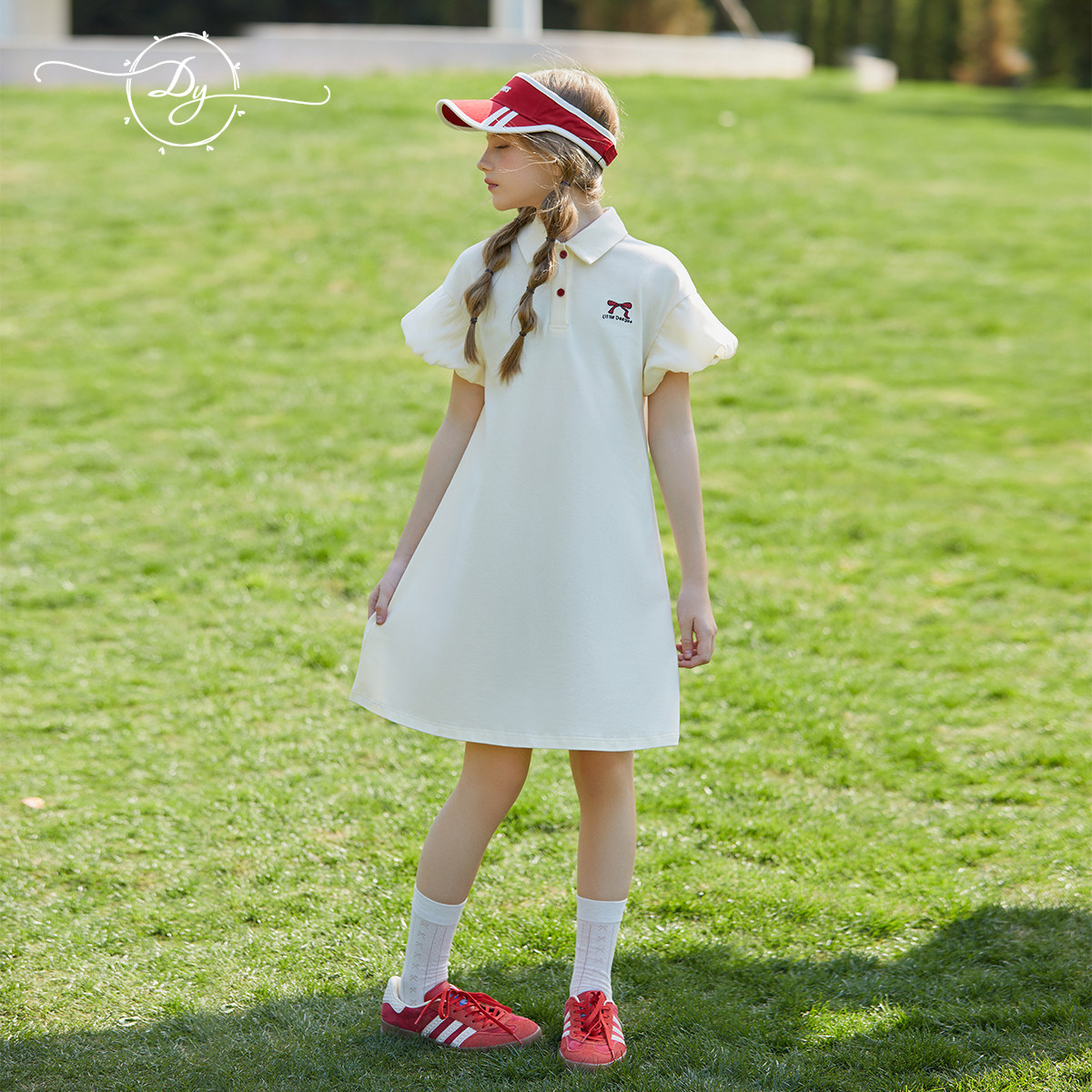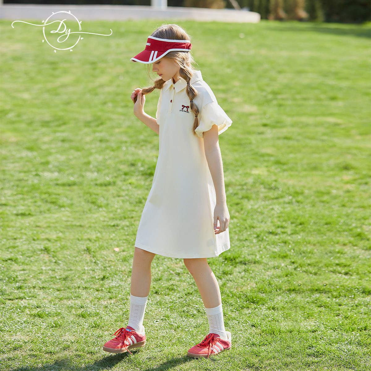 女童POLO裙洋气花苞袖连衣裙2025夏季大童学生透气轻薄学院风裙子