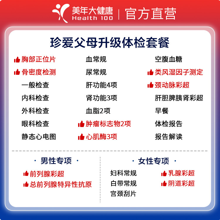 美年大健康珍爱父母升级体检套餐男女性中老年通用全身体检套餐