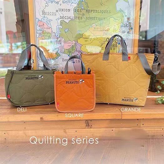 包邮 日本史努比绗缝太空棉卡通可爱刺绣大容量拎包斜挎包夹棉