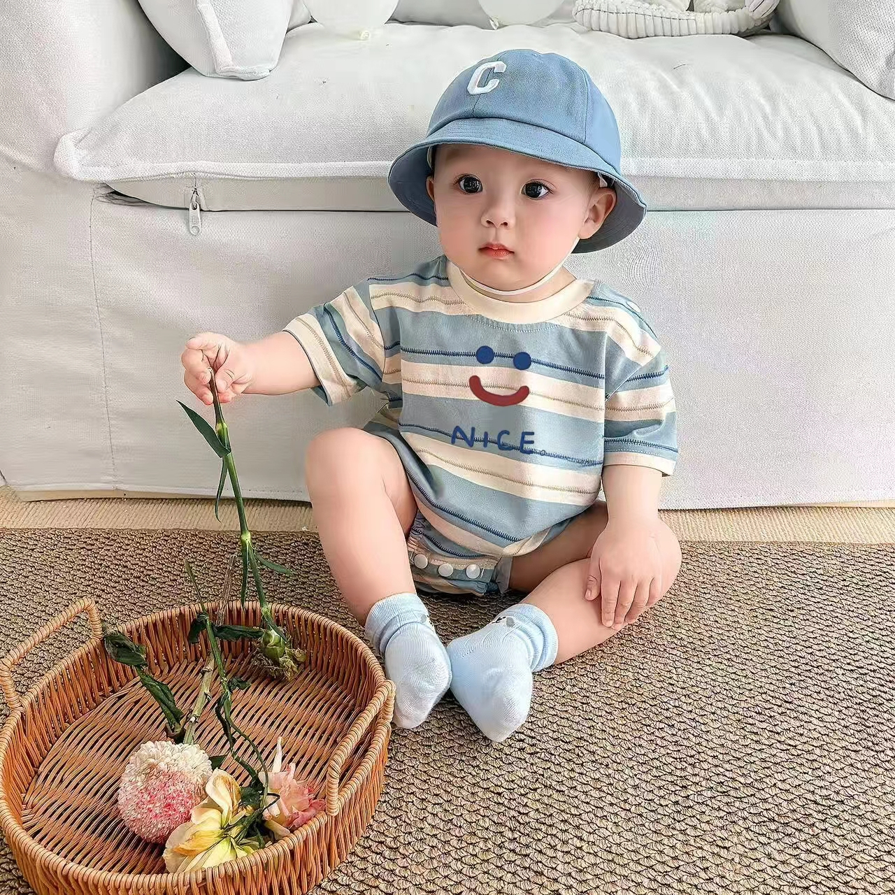 简约亲子装2025夏季新款一家三四口短袖全家装条纹T恤婴儿连体衣