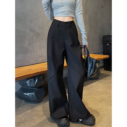 黑色阔腿裤女春秋季新款高级百搭喇叭西装休闲镰刀裤显瘦直筒长裤