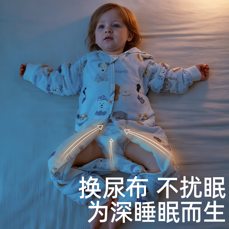 婴儿睡袋防踢被神器春秋冬款宝宝睡觉a类纯棉连体睡衣恒温可拆袖