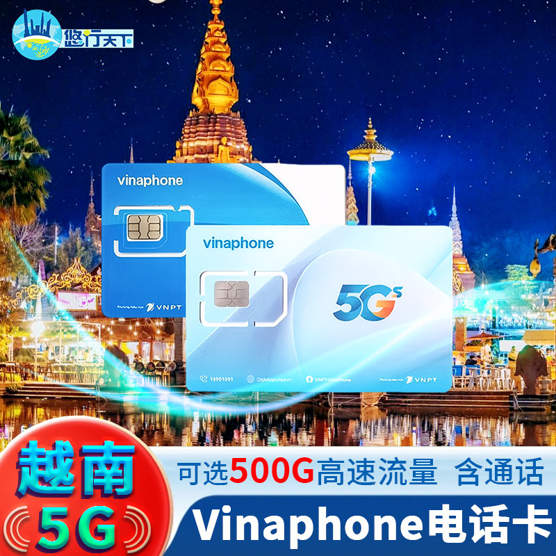 越南电话卡vinaphone5G/4G手机上网流量卡3-30天含通话芽庄胡志明