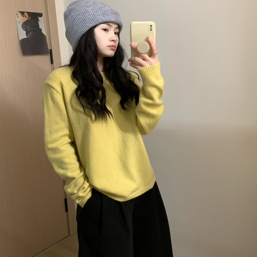 此外宽松显瘦圆领纯色毛衣女