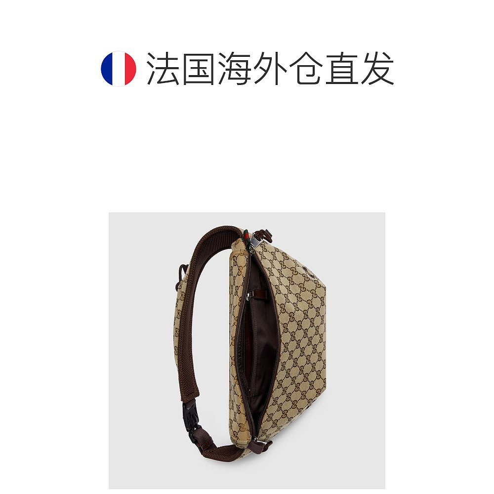 自营欧洲直邮Gucci古驰女士米色和乌木色 GG 帆布小号 GG腰包