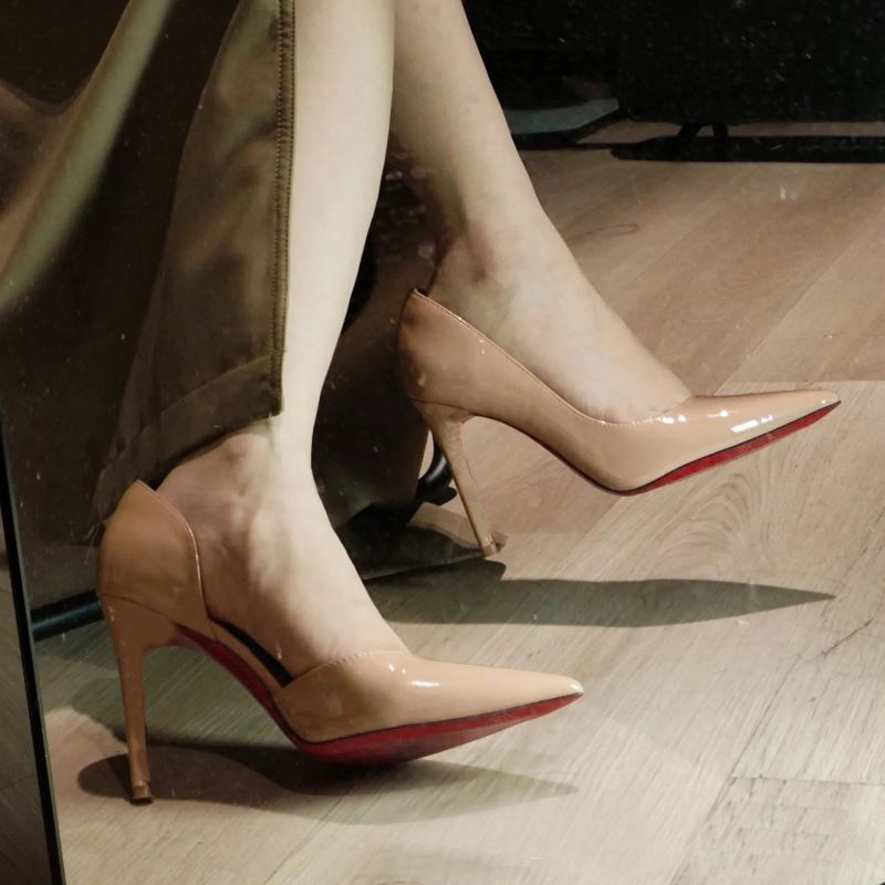 红底高跟鞋女秋冬款2025年新款细跟尖头侧空漆皮职业性感裸色单鞋
