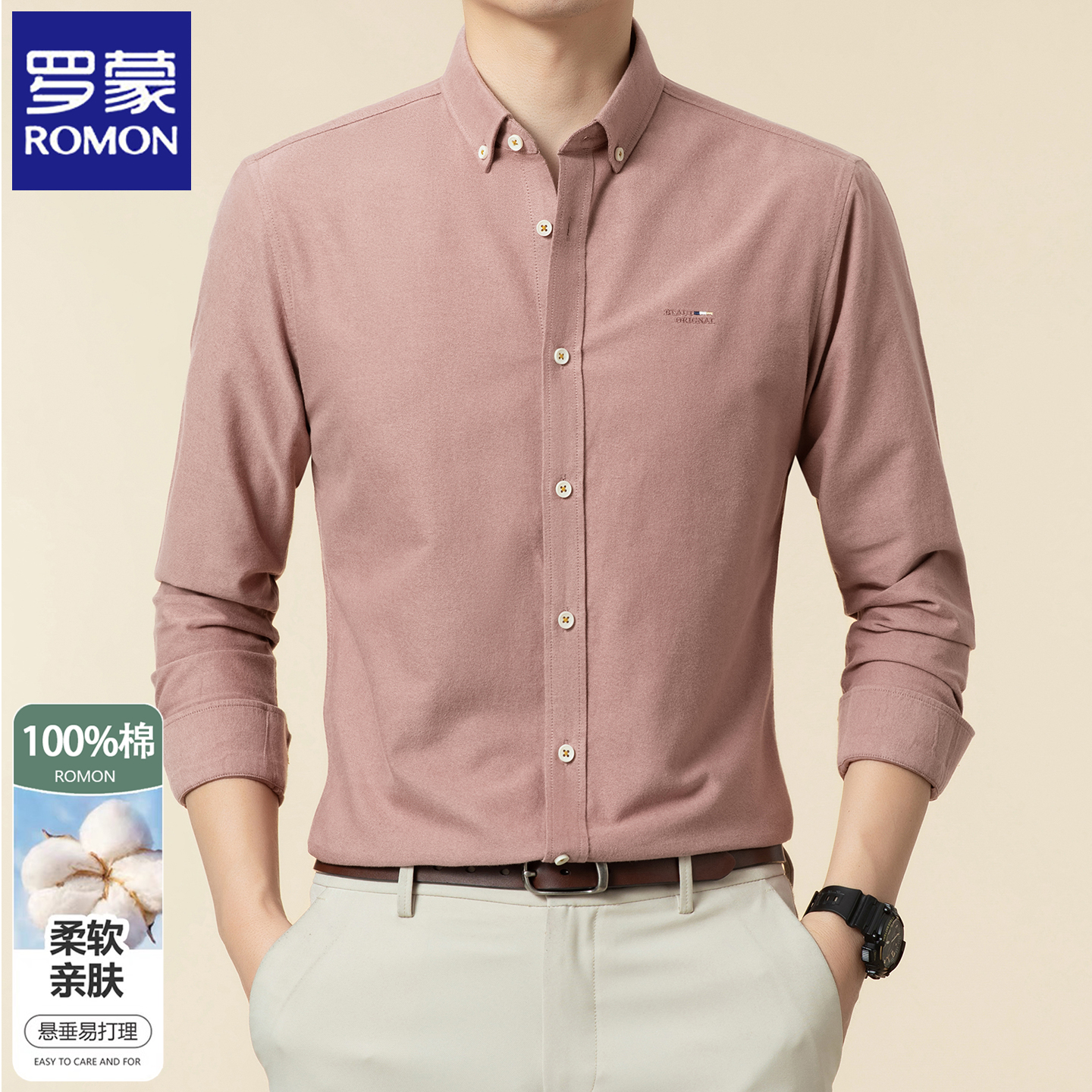 罗蒙2025春秋长袖衬衫男装白衬衣