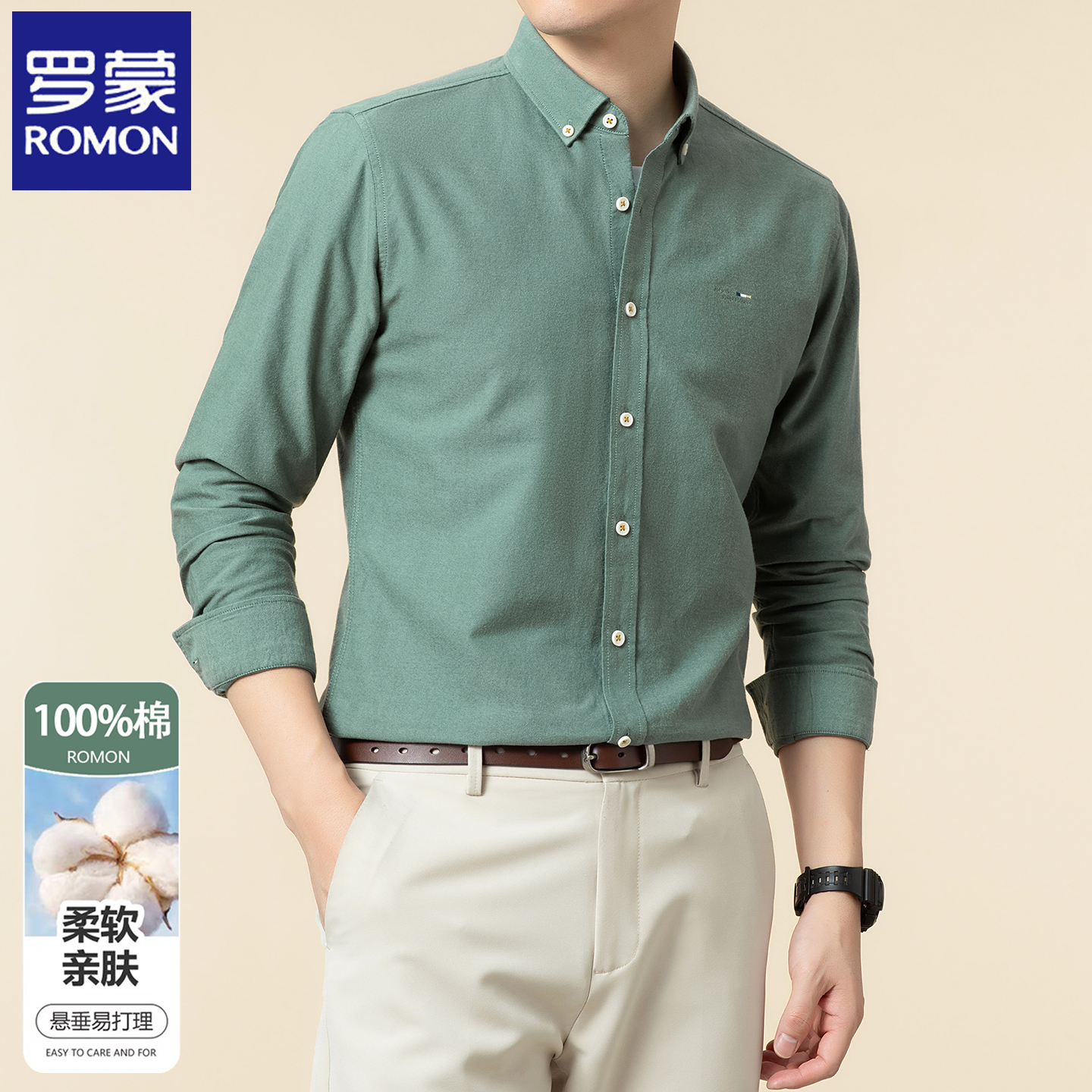 罗蒙2025春秋季新款纯棉衬衫男士长袖商务休闲亲肤透气全棉衬衣服
