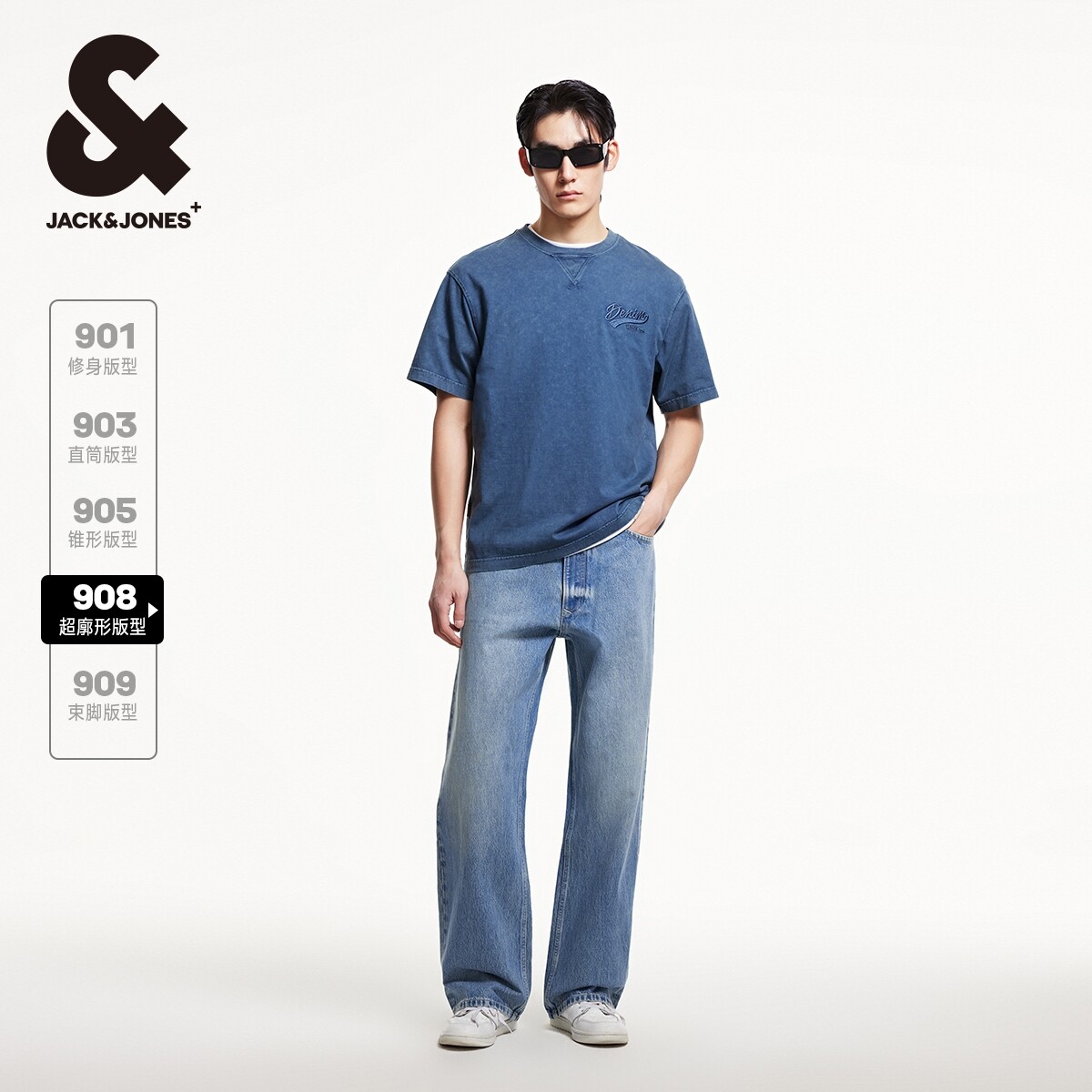绫致杰克琼斯冬时尚百搭潮简约休闲拉链门襟廓形牛仔裤长裤裤子男