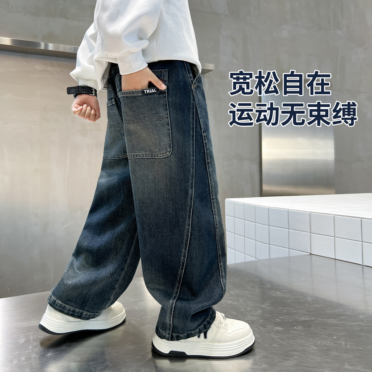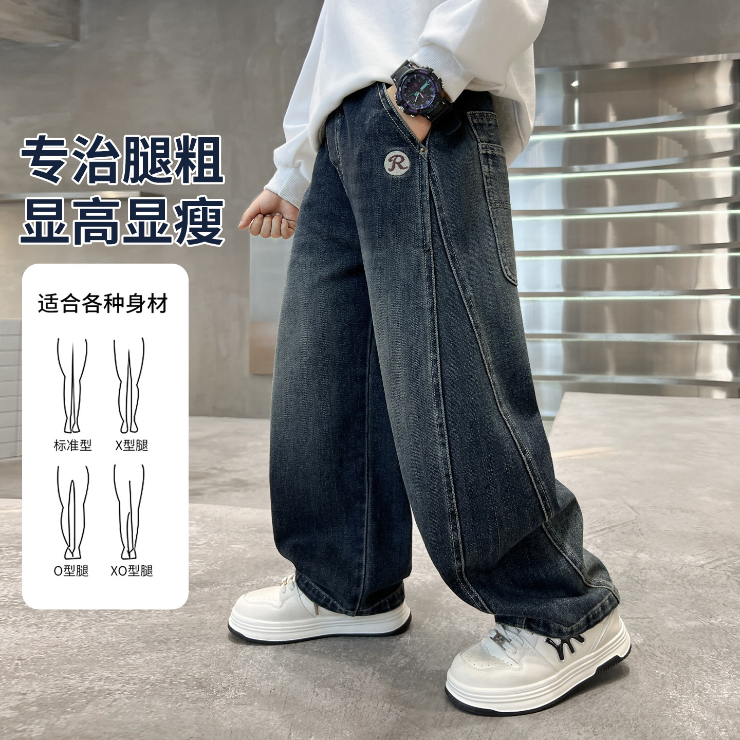 胖童裤子冬季加绒加厚男童牛仔裤男孩中大童长裤大码童装加肥加大