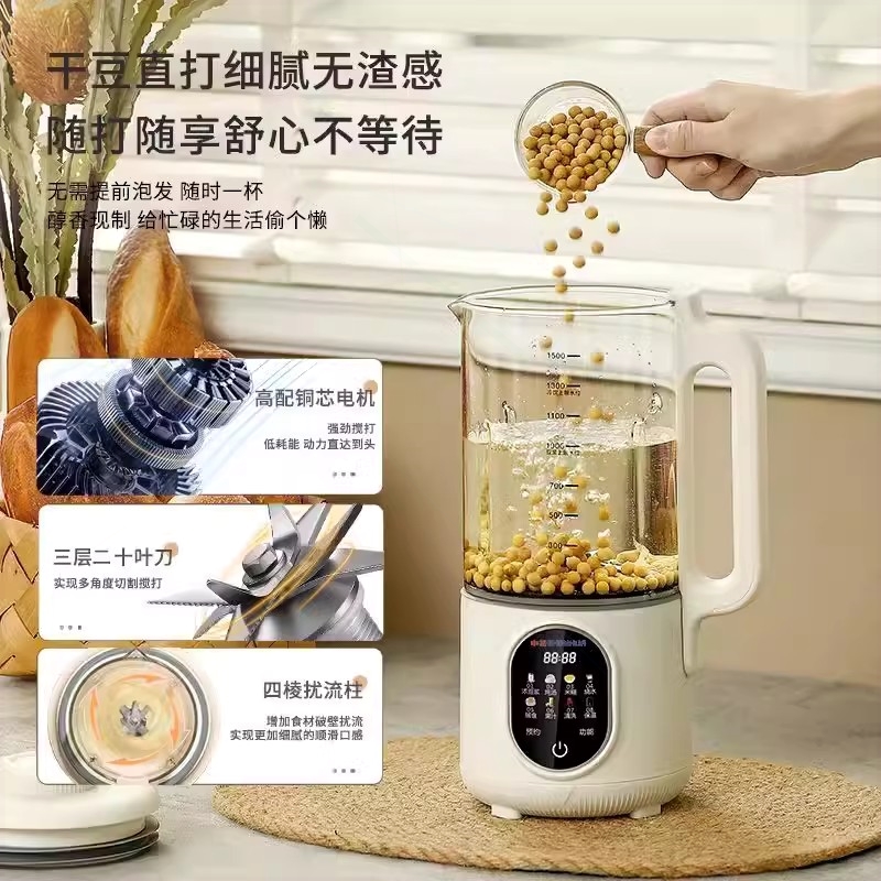 申花破壁机1.5升大容量家用豆浆免滤全自动榨汁机细机多功能免煮