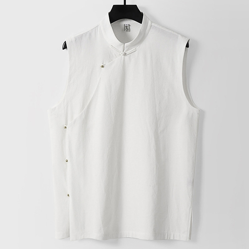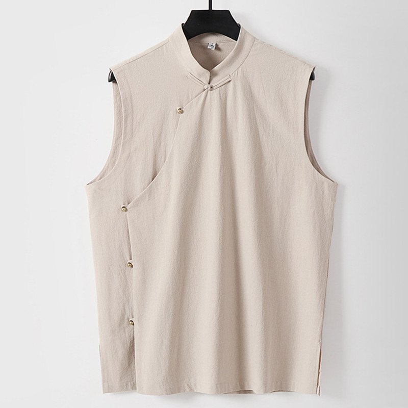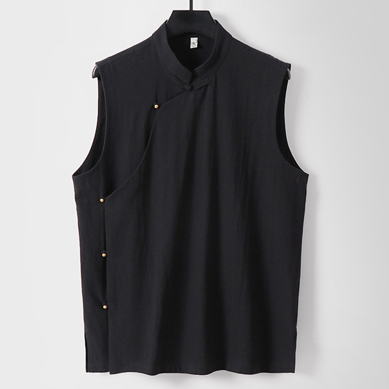 亚麻斜襟马甲男装复古马褂棉麻盘扣大码原创新中式背心胖子夏唐装