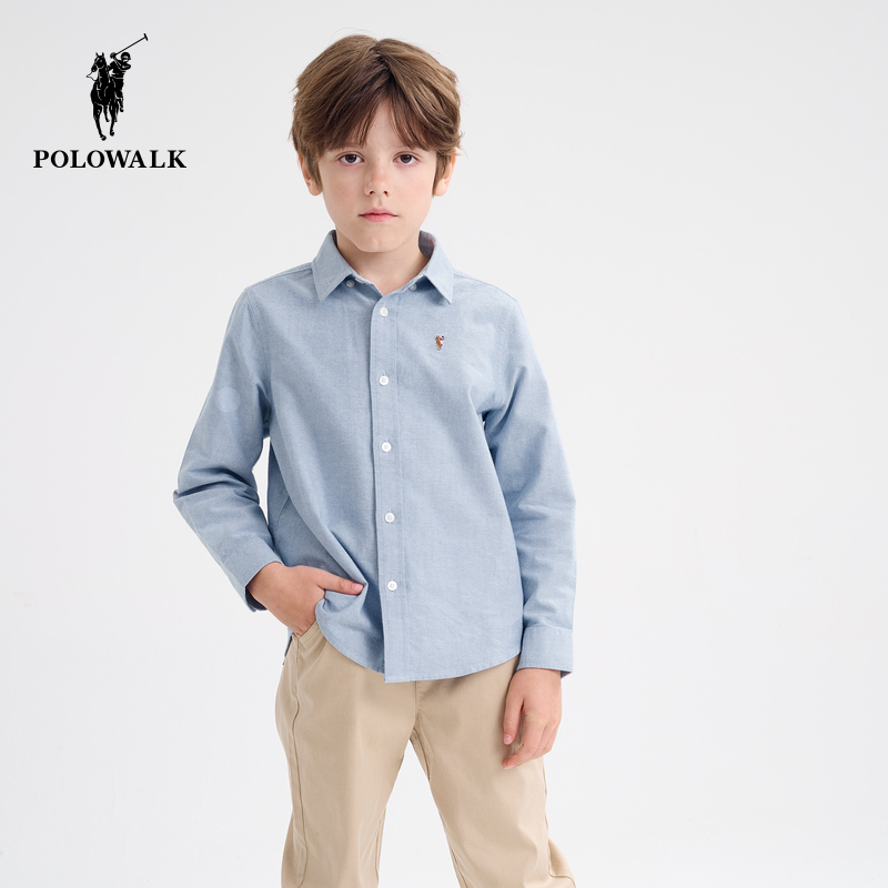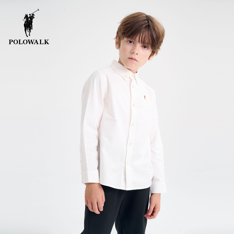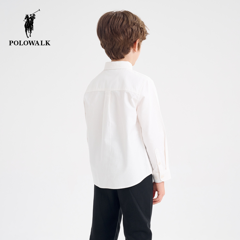 POLOWALK童装男童白色衬衫长袖2024秋季新款儿童纯棉牛津纺衬衣
