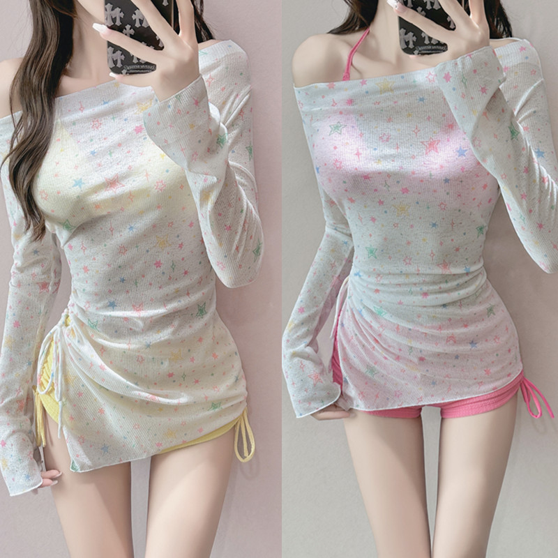 2025夏季纯欲风少女小胸聚拢星星罩衫平角比基尼泳衣温泉度假泳装