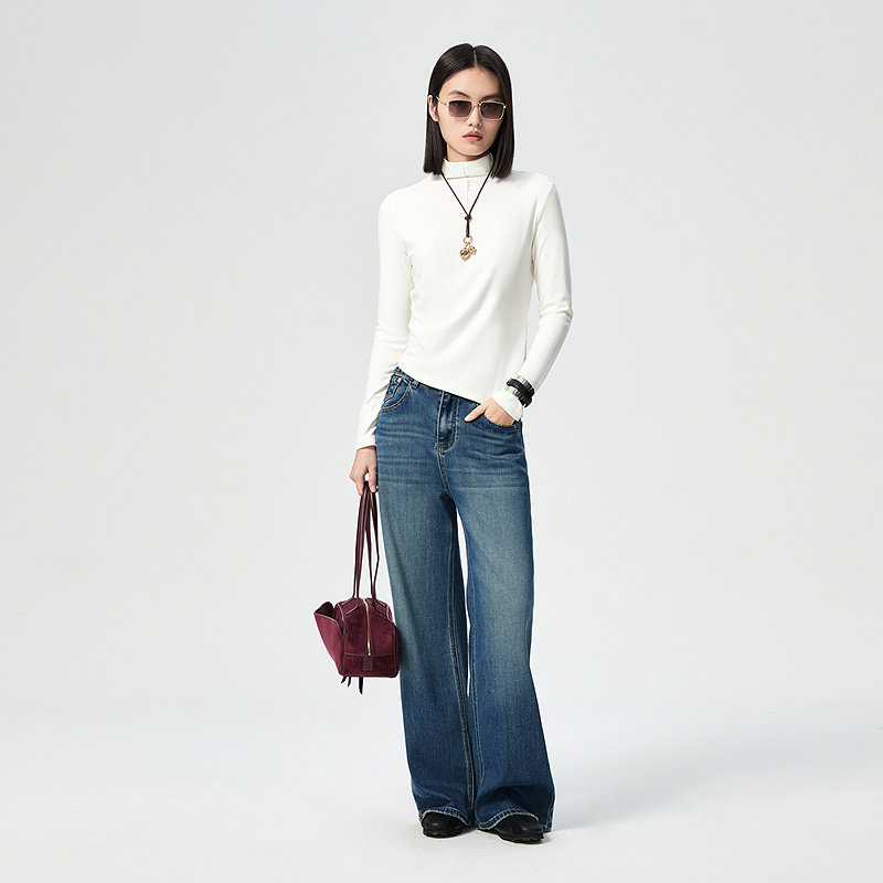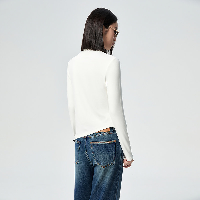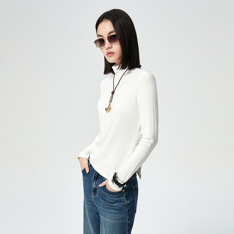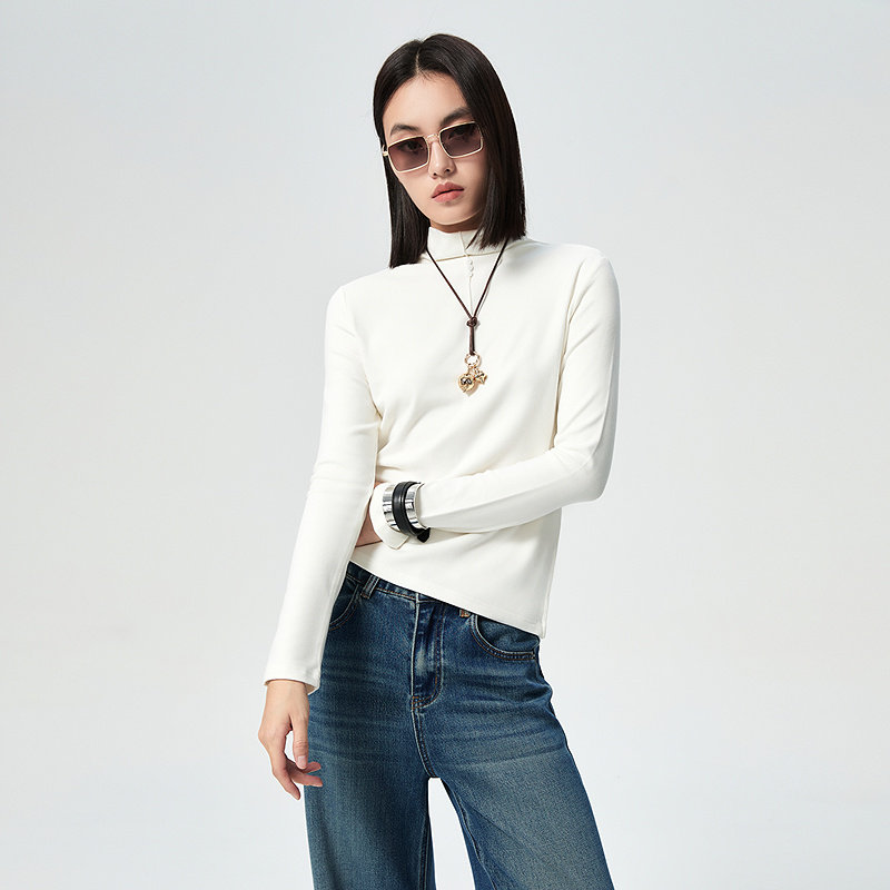 普普风商场同款保暖内搭百搭显瘦打底衫上衣前胸纽扣小高领T恤女