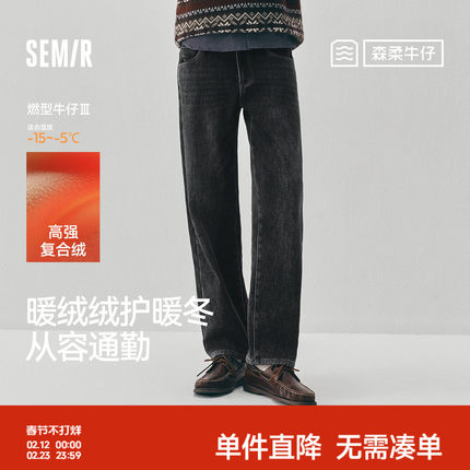 森柔|商场同款森马牛仔裤男冬季加绒直筒裤2025新款复古通勤长裤