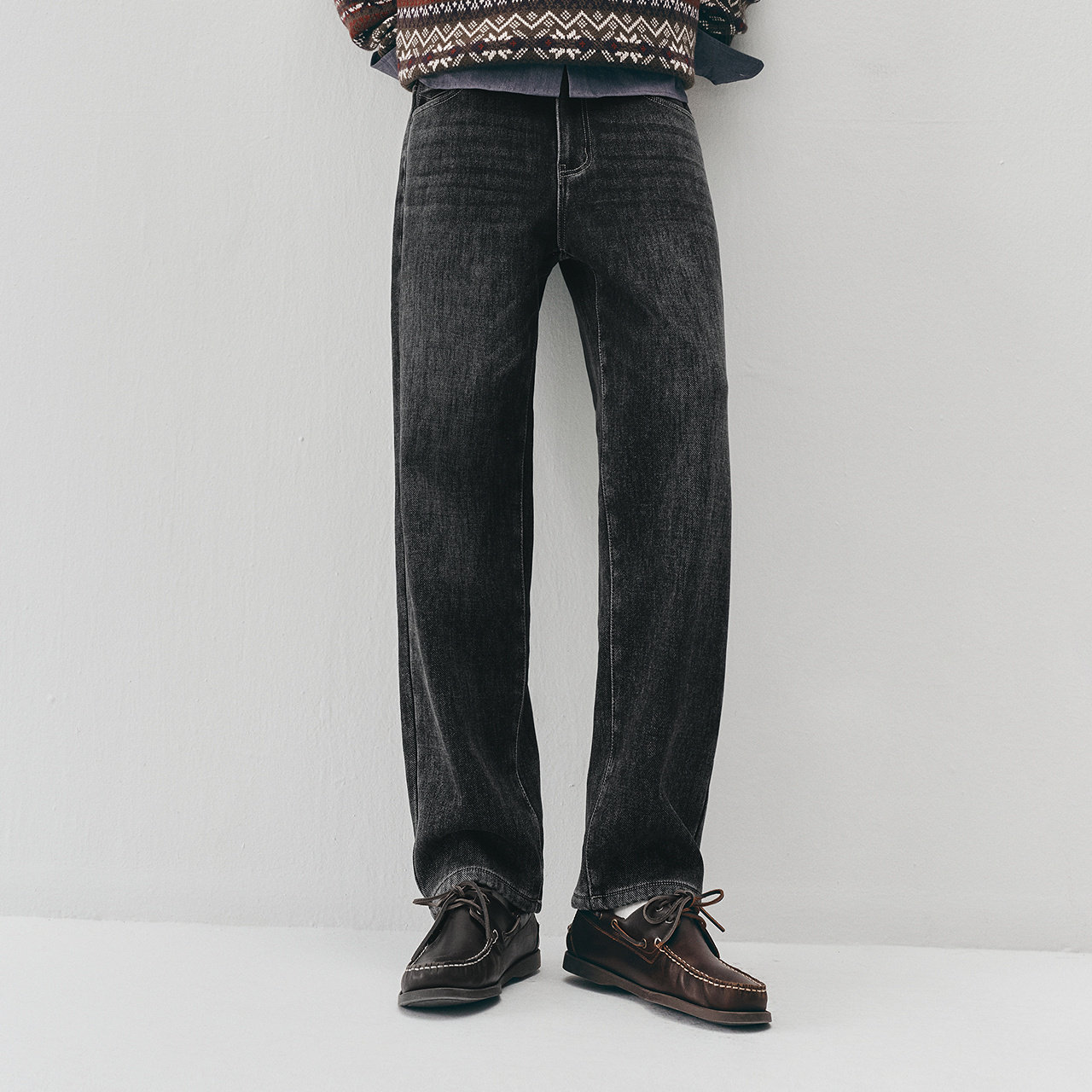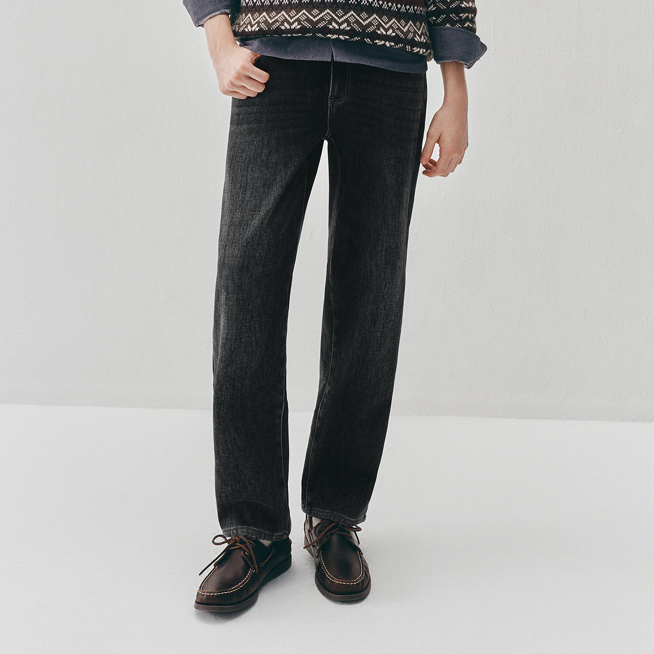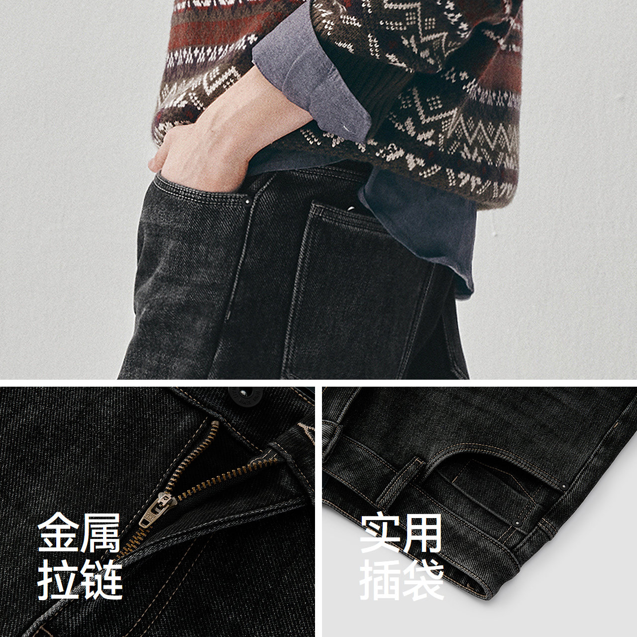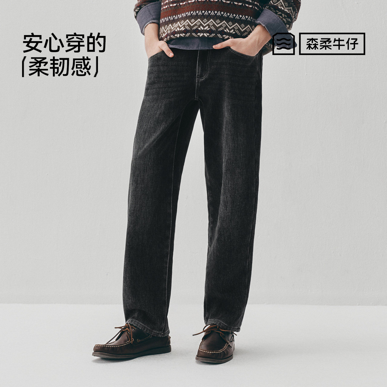 森马加绒直筒裤复古通勤牛仔裤男